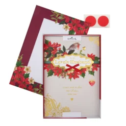 Hallmark Medium Luxury Boxed Christmas Card For Husband – Traditional Robin And Foliage Design