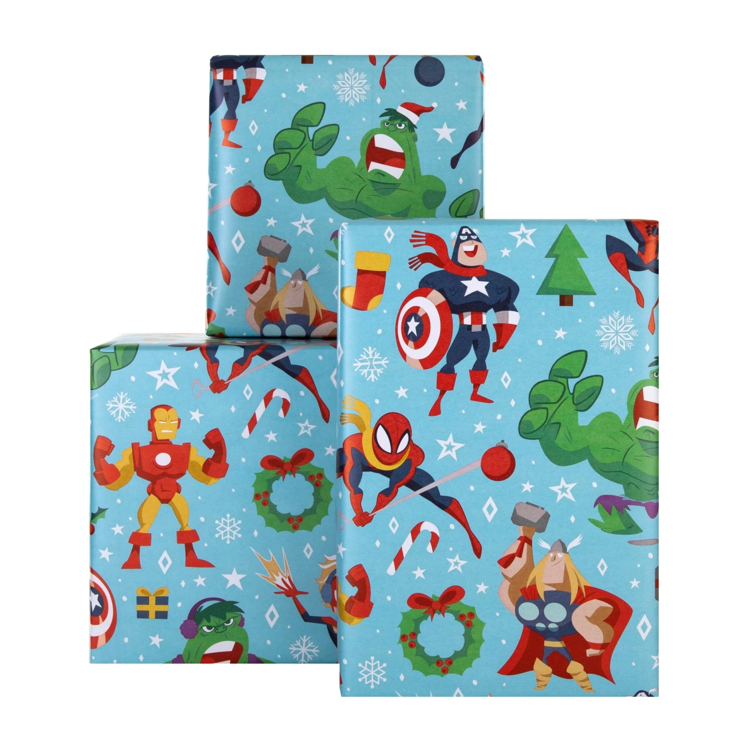 The pack contains 3 rolls of wrapping paper in 1 MARVEL design, roll wrap features the characters Spider-Man, Captain America, The Hulk, Thor, Iron Man and Black Widow.