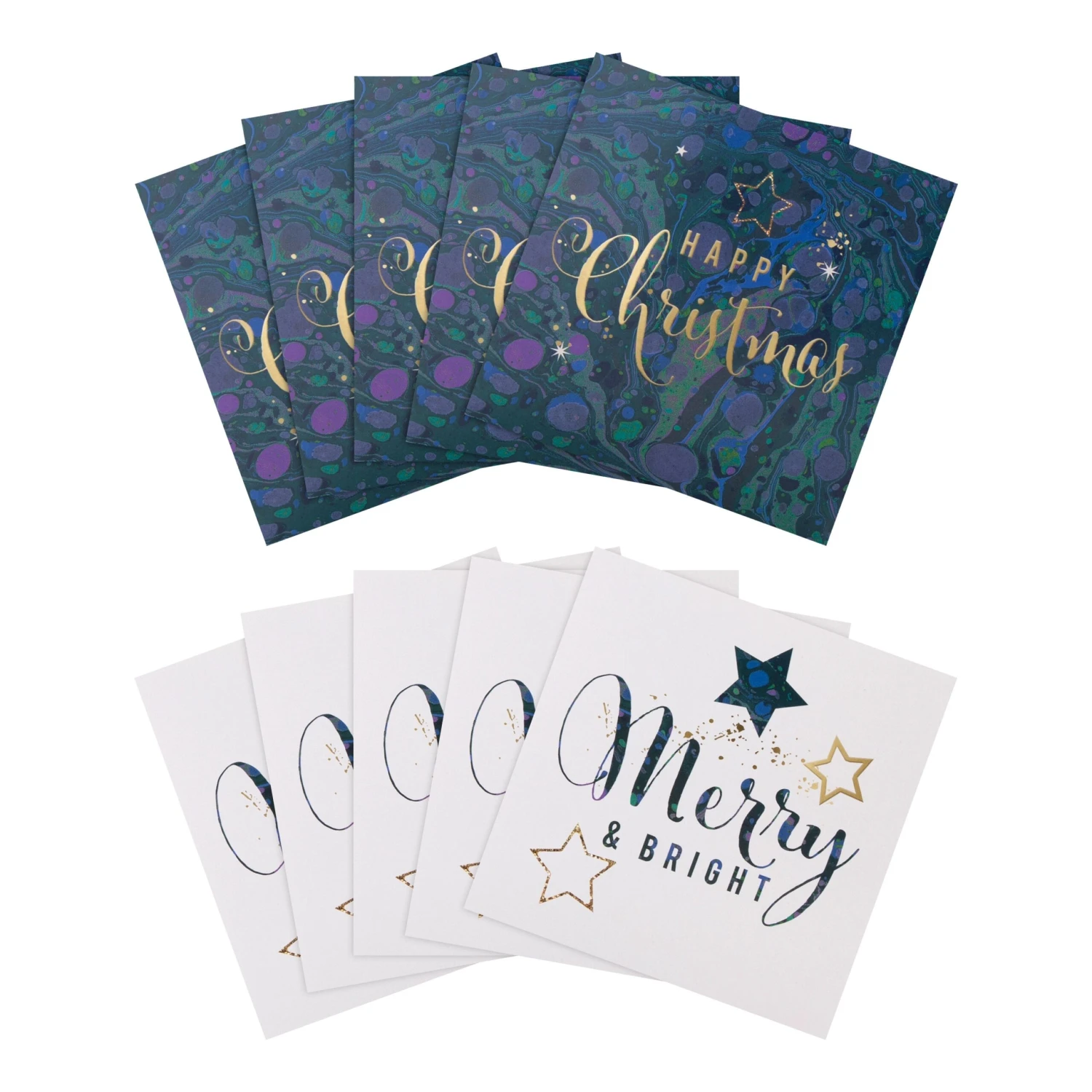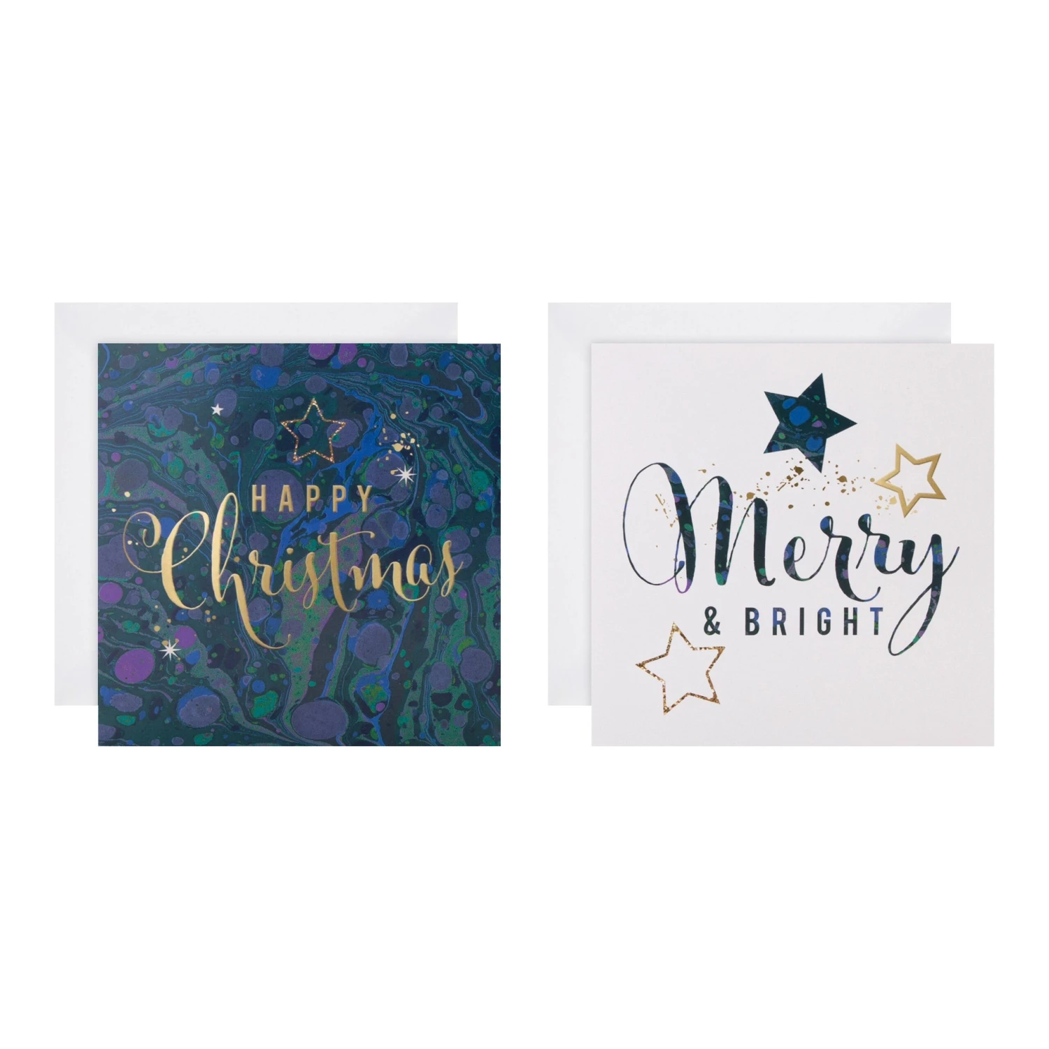 Printed on high-quality board, this pack of cards comes in 2 lovely designs, 1 blue background design with ‘Merry Christmas’ text and 1 white background design with ‘Merry and Bright’ text, and comes complete with Hallmark branded, white envelopes.