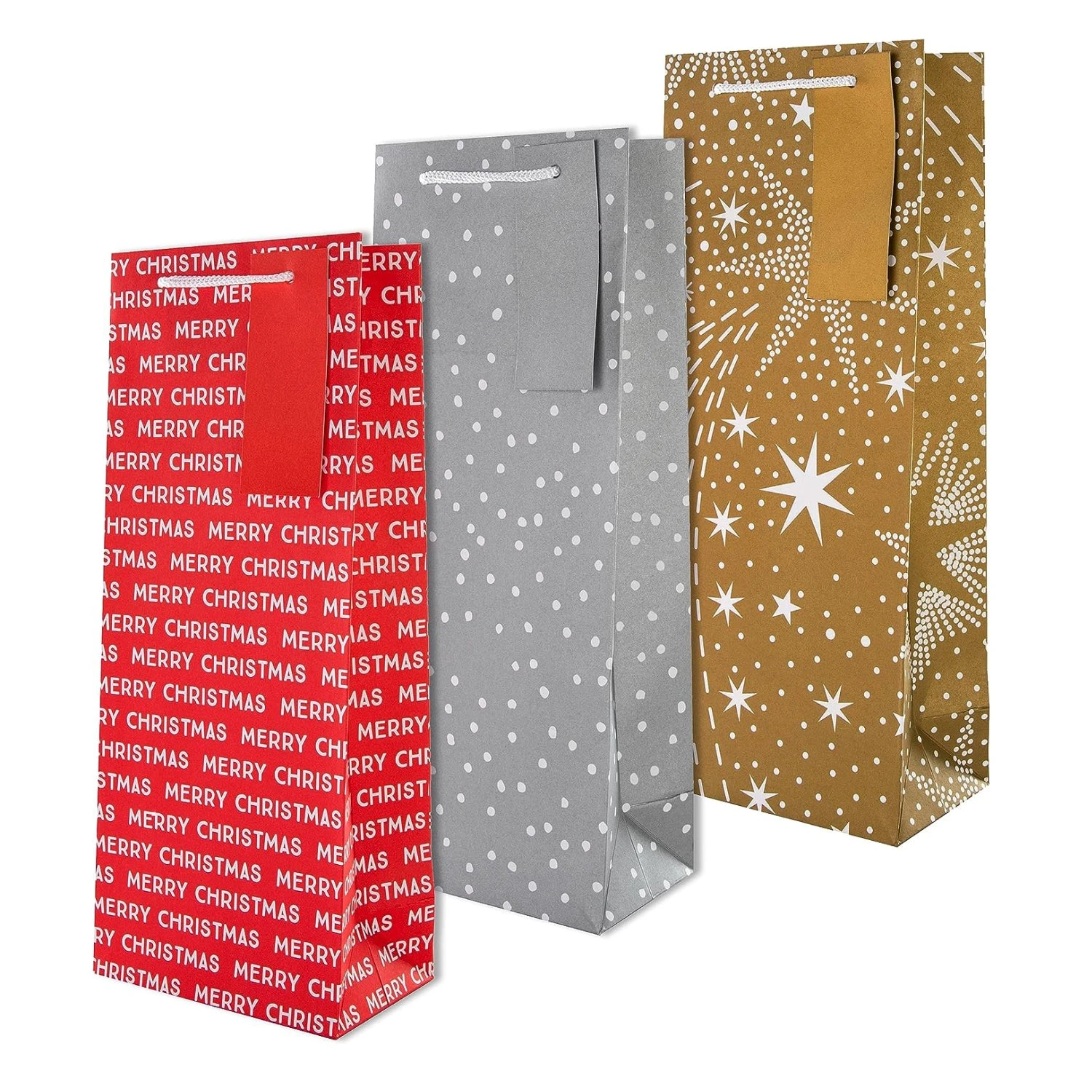 Each bag features sturdy white cord handles and comes complete with a co-ordinating gift tag