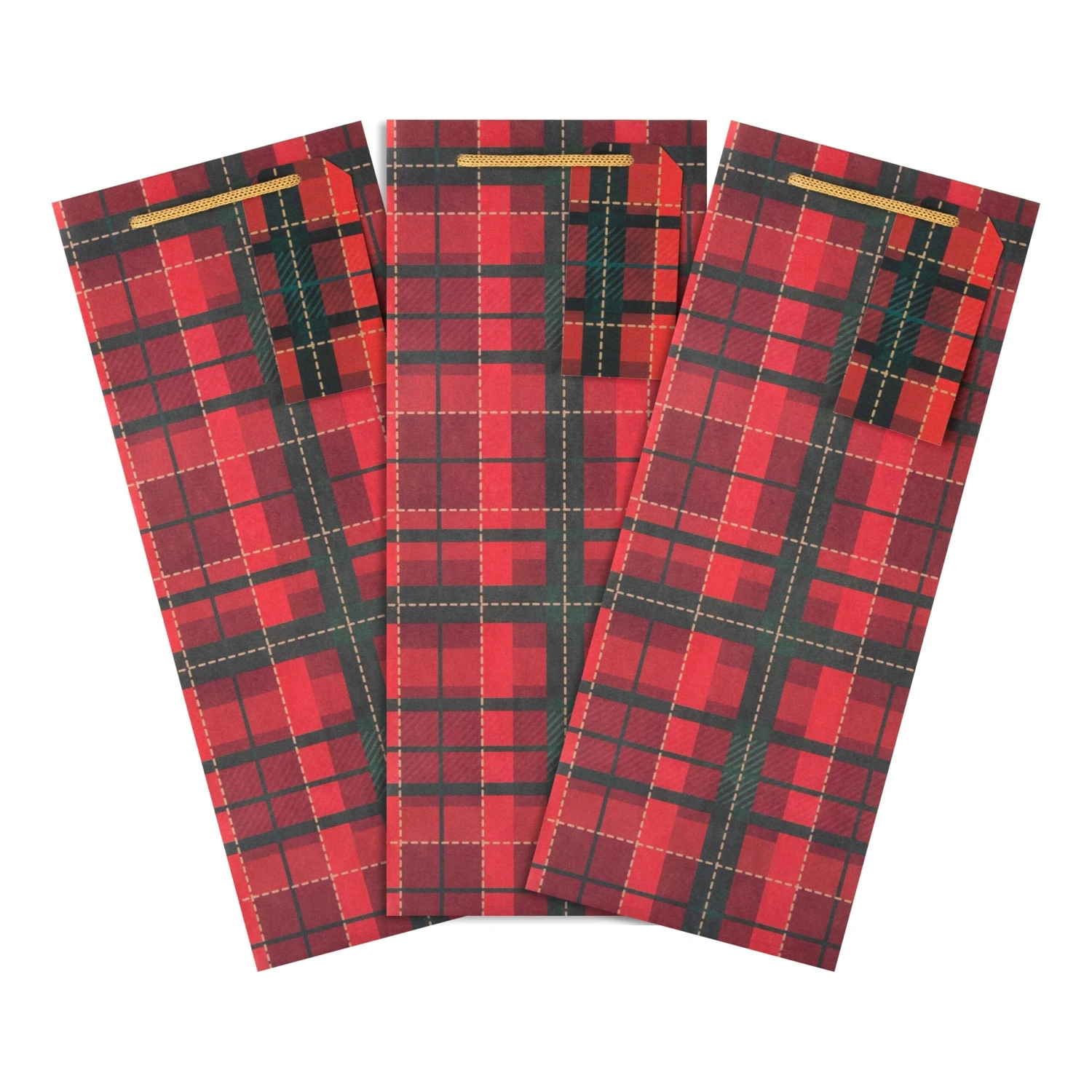 Celebrate the Christmas cheer and hand out their favourite bottle of wine or whiskey, with this 3 pack of stylish tartan bottle gift bags.