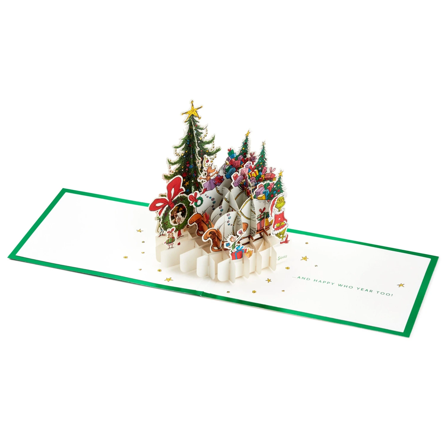 Printed on high-quality board, this card pops-up into a 3D card and features green foil details and a laser cut design, with the message ‘Merry Grinchmas’ on the front, and comes complete with a co-ordinating white, with green foil inside, Hallmark branded envelopes.