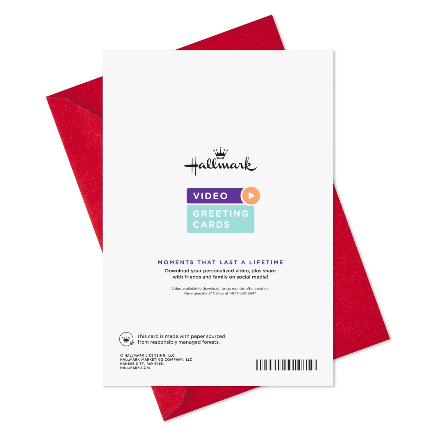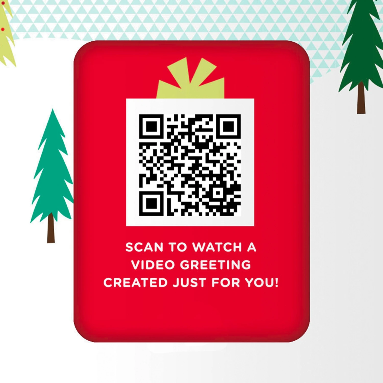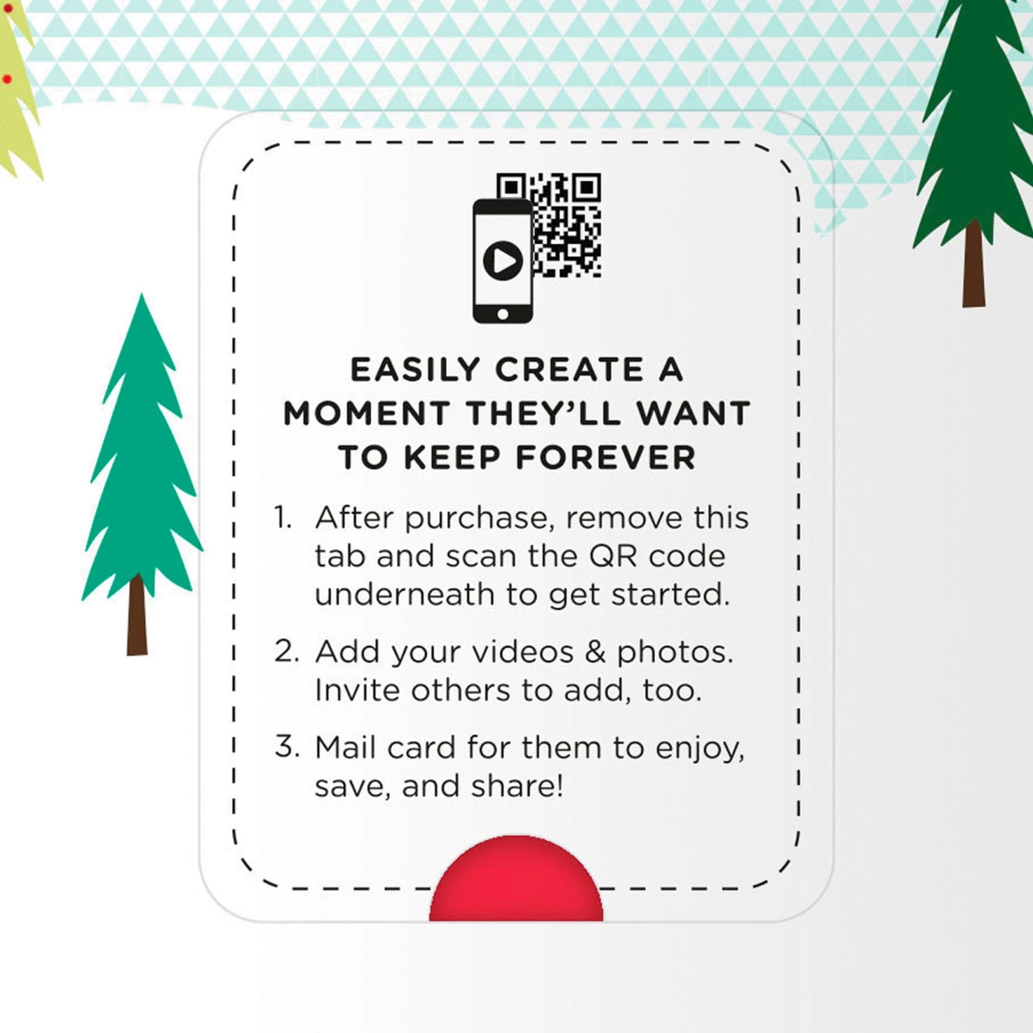 Remove the tab inside the card to reveal the QR code underneath, scan the QR code to start creating a video. (Invite others to upload their photos and videos too!) Recipient then scans the QR code in the card to watch, save, and enjoy over and over again