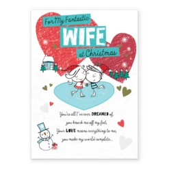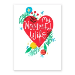 Pod Personalised Wife Traditional Verse Heart & Flowers Christmas Card