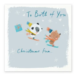 Pod Personalised Cute Christmas Panda Bear Skiing To Both Card