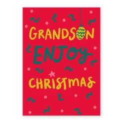 Pod Personalised Grandson Red Green & Gold Text Squiggles Christmas Card