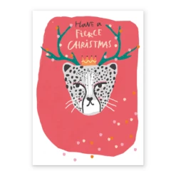Pod Personalised Modern Christmas Quirky Cheetah With Antlers Card