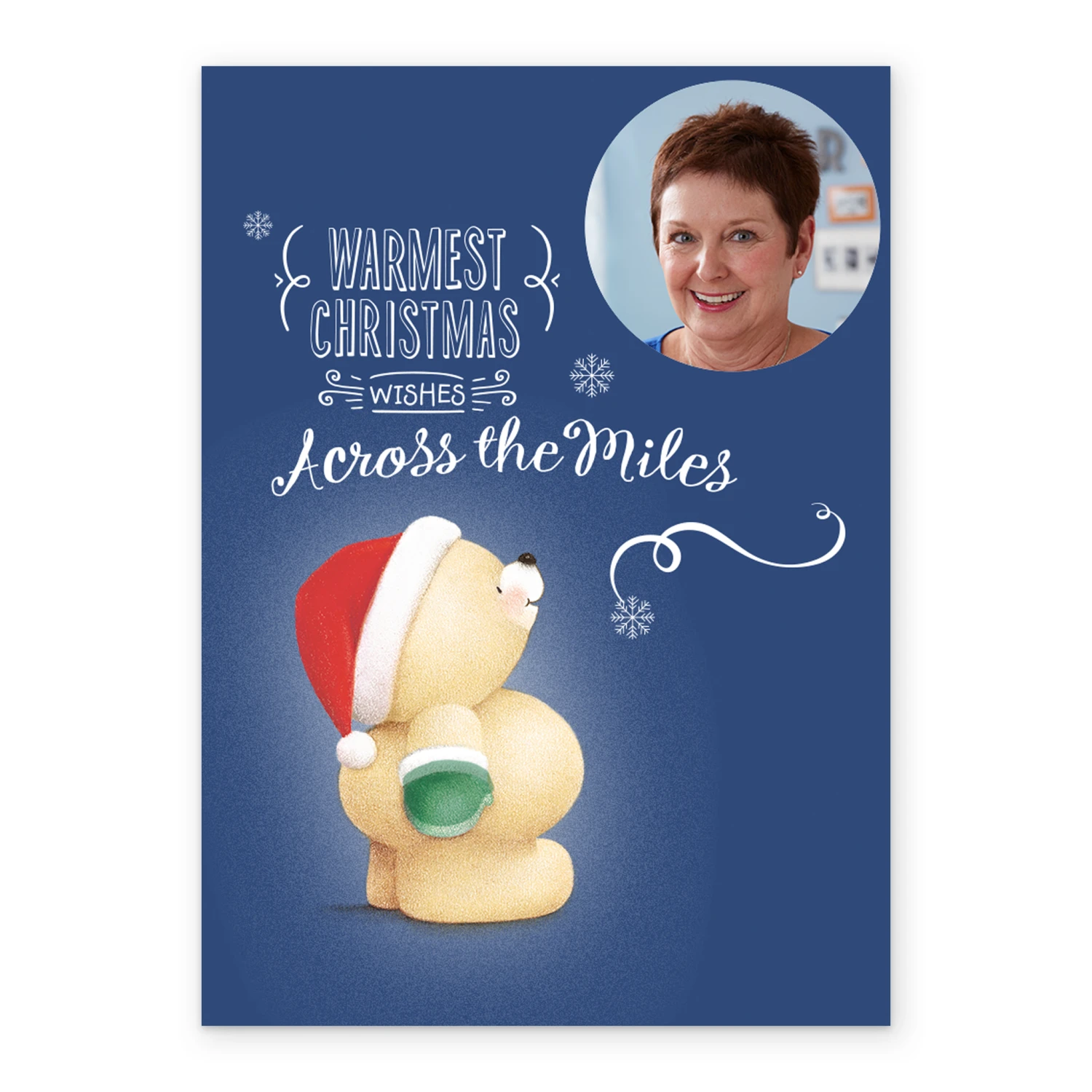 Show them you care with a personalised Forever Friends photo upload Christmas card to send across the miles from Hallmark. Our Christmas cards are printed on premium quality, FSC®-certified card & delivered nationwide. This card is available as standard 12cm by 16.7cm and large 15.5cm by 21.6cm.