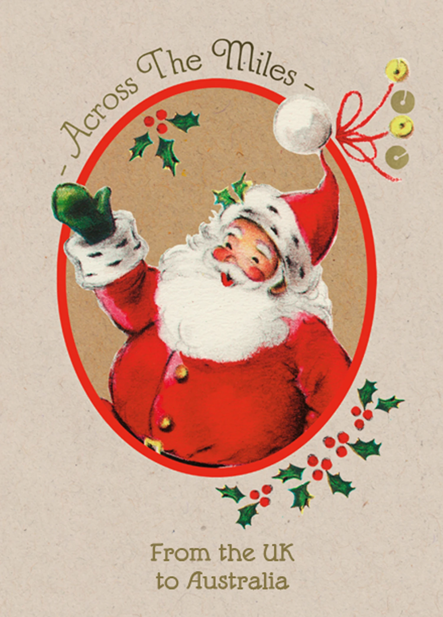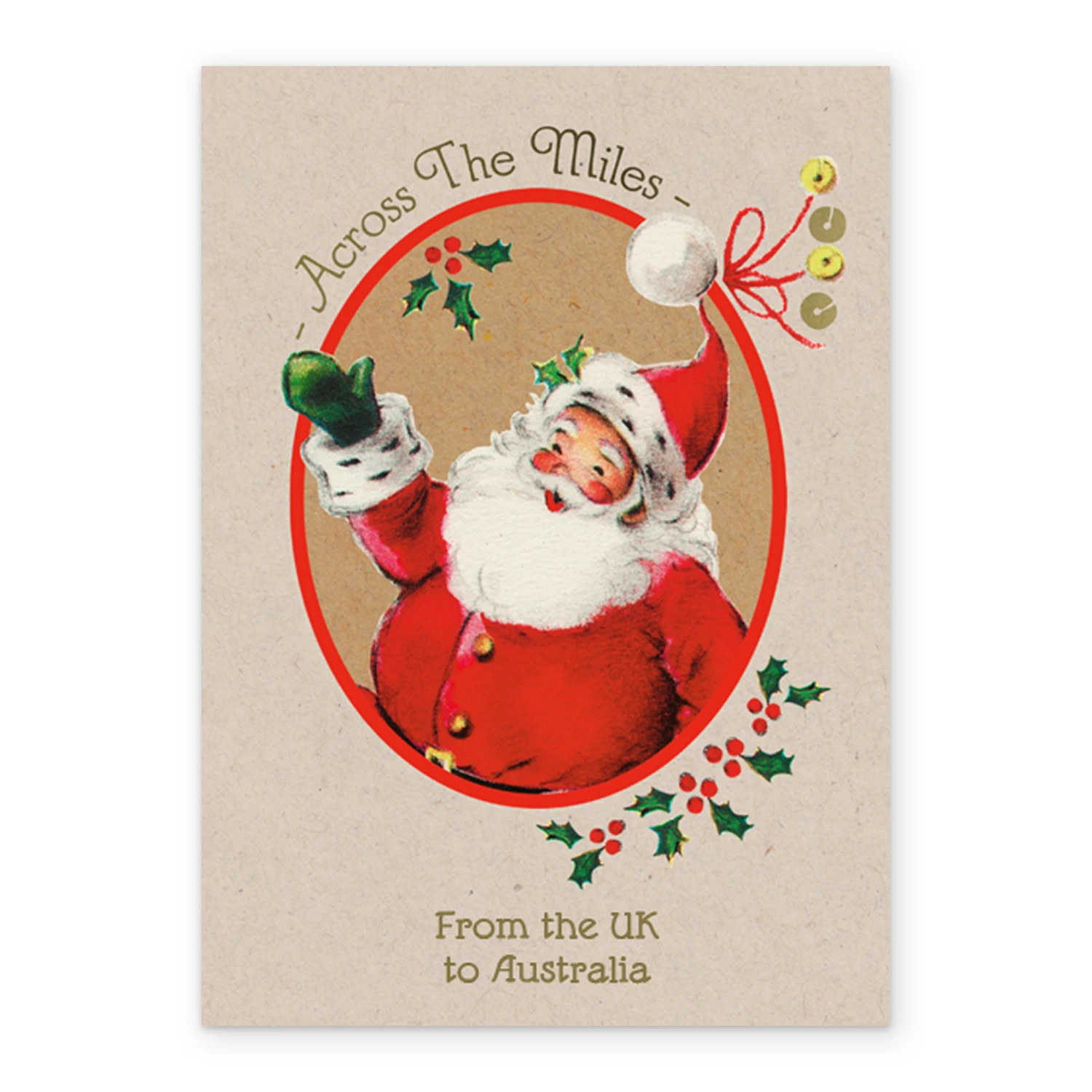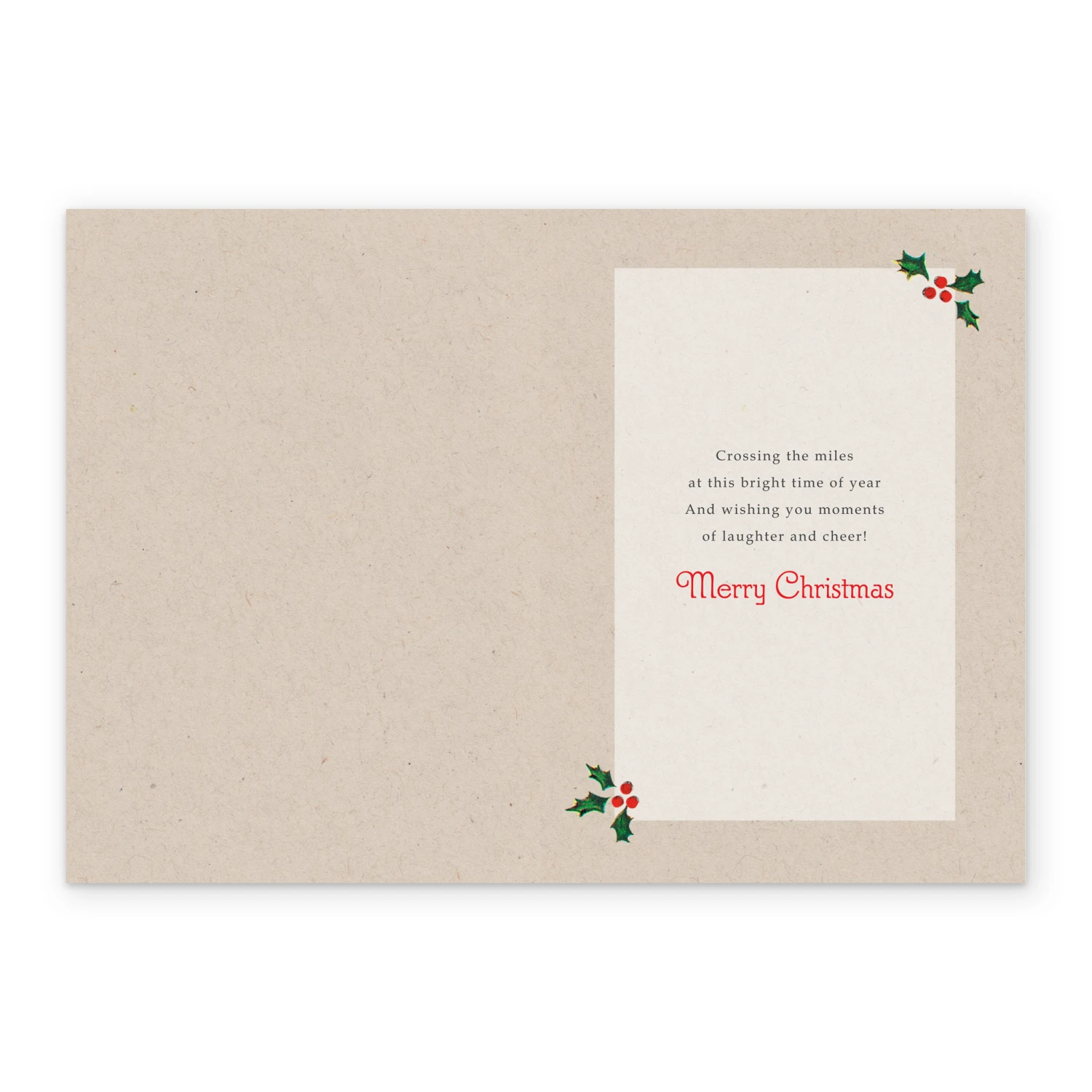 Show them you care with a personalised across the miles sweet Santa Christmas card from Hallmark. Our greetings cards are printed on premium quality, FSC®-certified card & delivered nationwide. This card is available as standard 12cm by 16.7cm and large 15.5cm by 21.6cm.