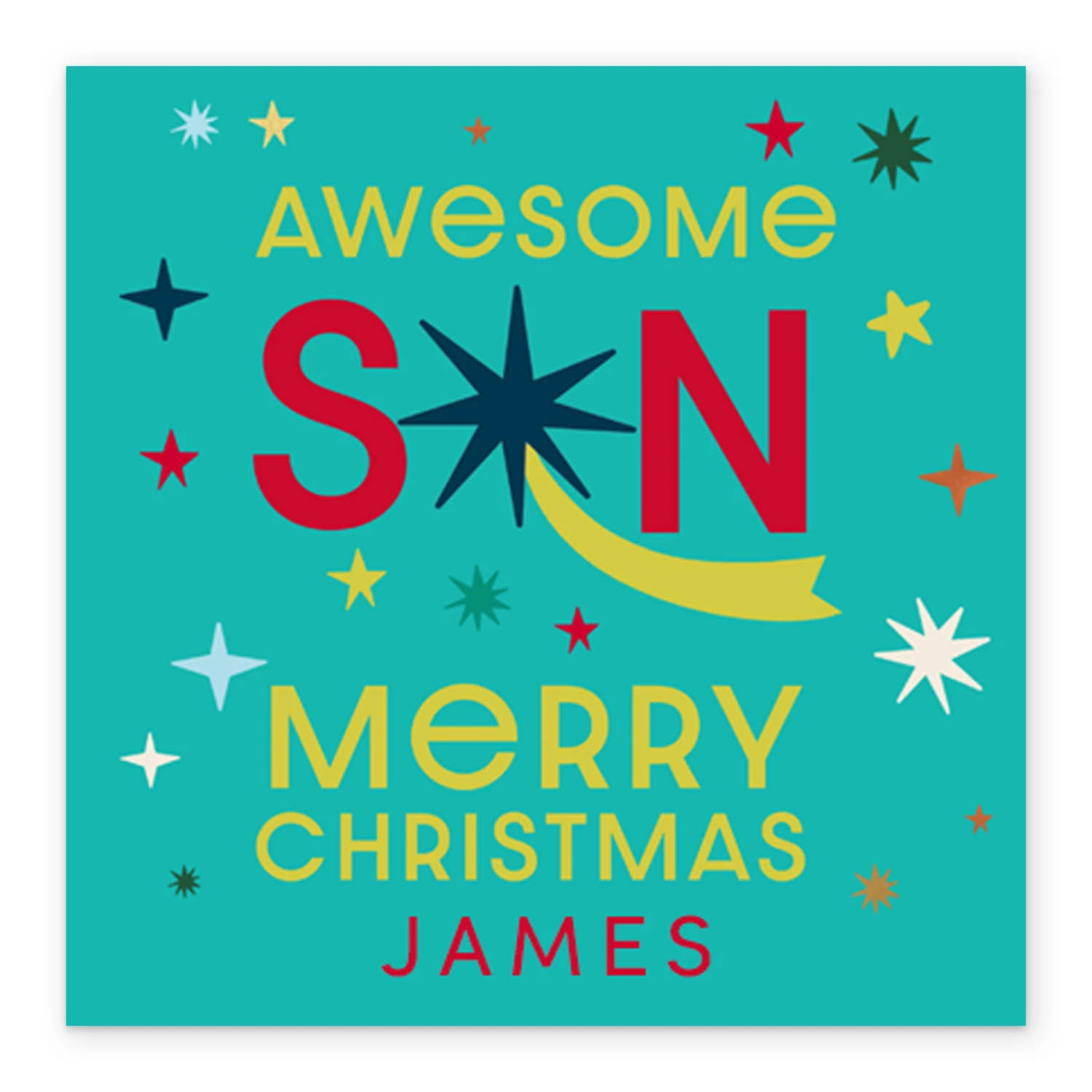 Show them you care with a personalised awesome son shooting star Christmas card from Hallmark. Our greetings cards are printed on premium quality, FSC®-certified card & delivered nationwide. This card is available as standard 12cm by 12cm and large 15cm by 15cm.