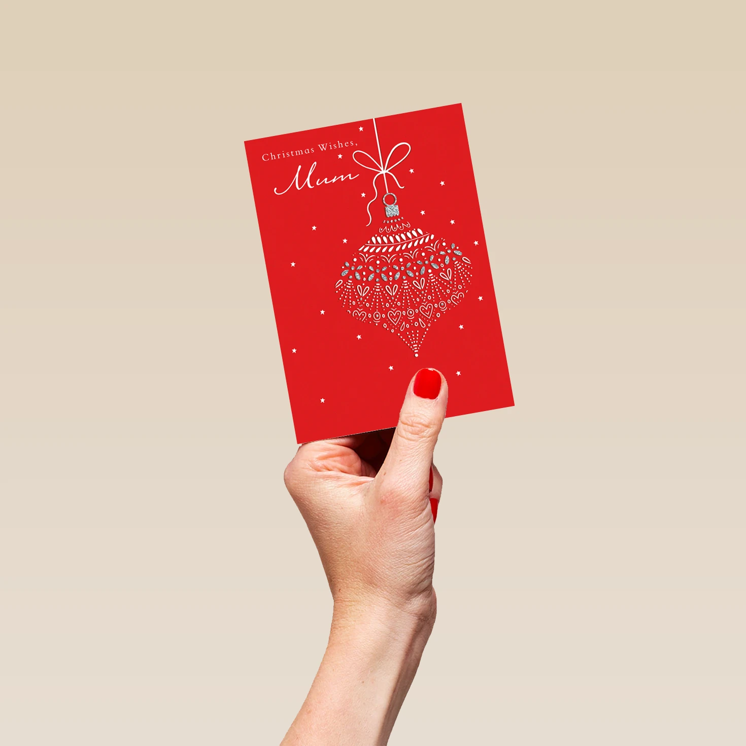 Show them you care with a personalised bauble card for mum from Hallmark. Our Christmas cards are printed on premium quality, FSC®-certified card & delivered nationwide. This card is available as standard 12cm by 16.7cm and large 15.5cm by 21.6cm.