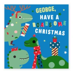 Pod Personalised Kids Christmas Editable Dinosaurs Roarsome Card