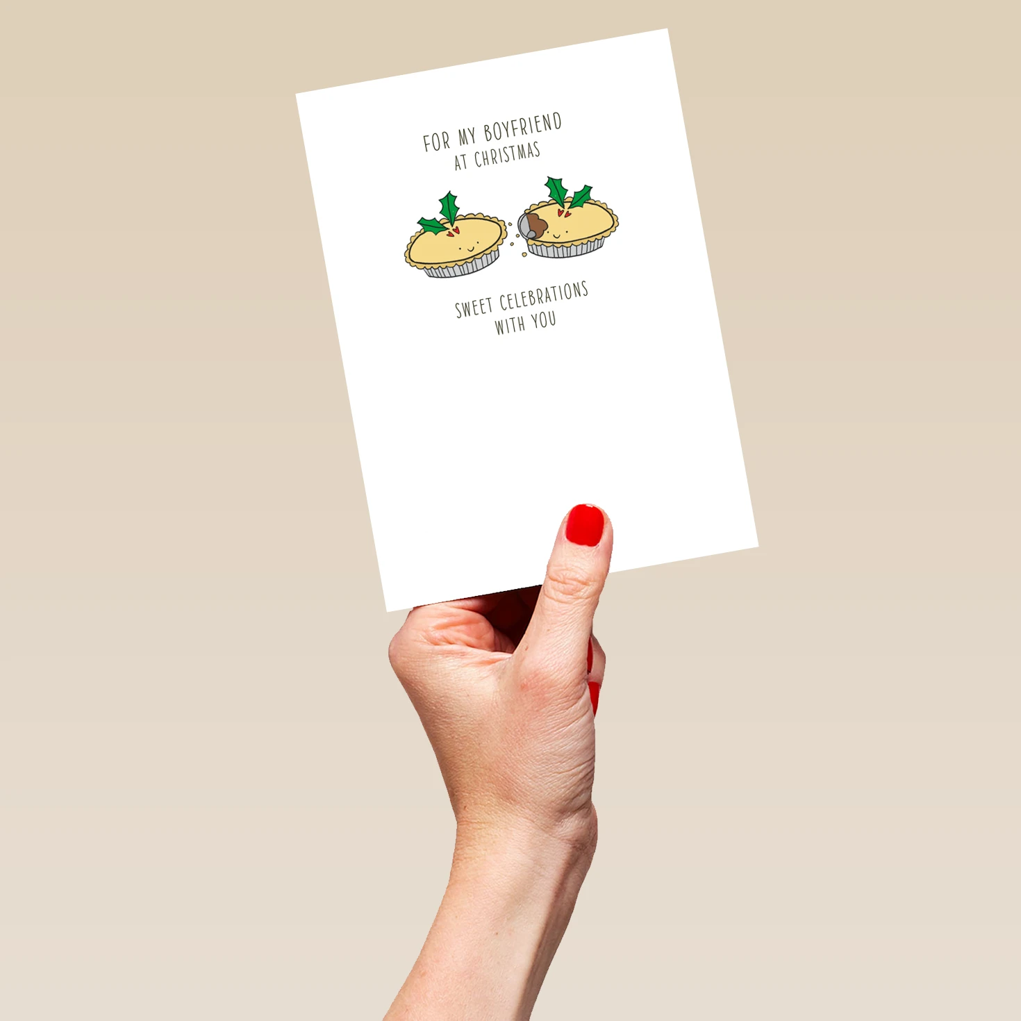 Pod Personalised Boyfriend Cute Mince Pie Christmas Card