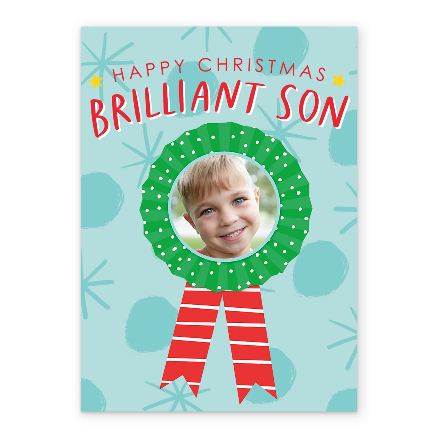 Pod Personalised Brilliant Son Rosette Photo Christmas Card