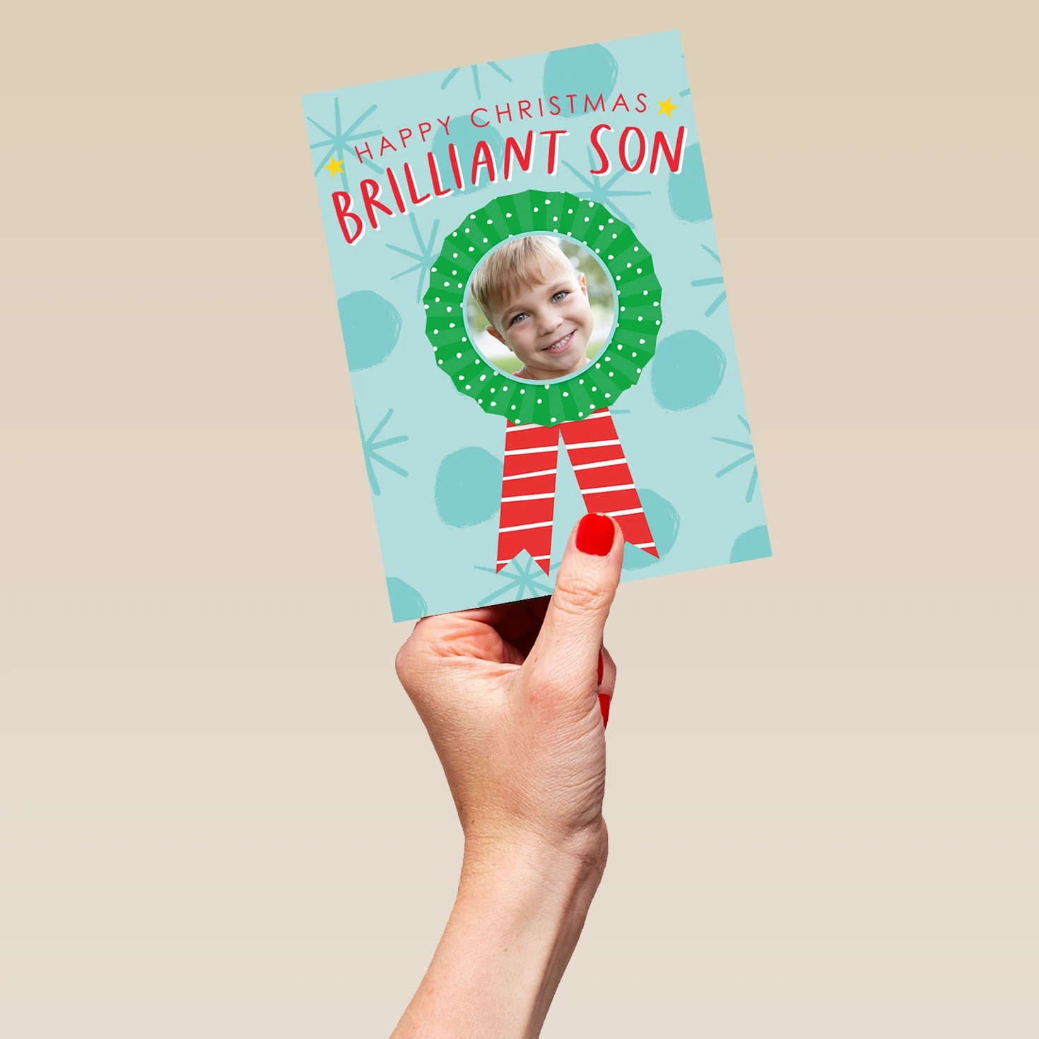 Be the first to review “Pod Personalised Brilliant Son Rosette Photo Christmas Card” Cancel reply