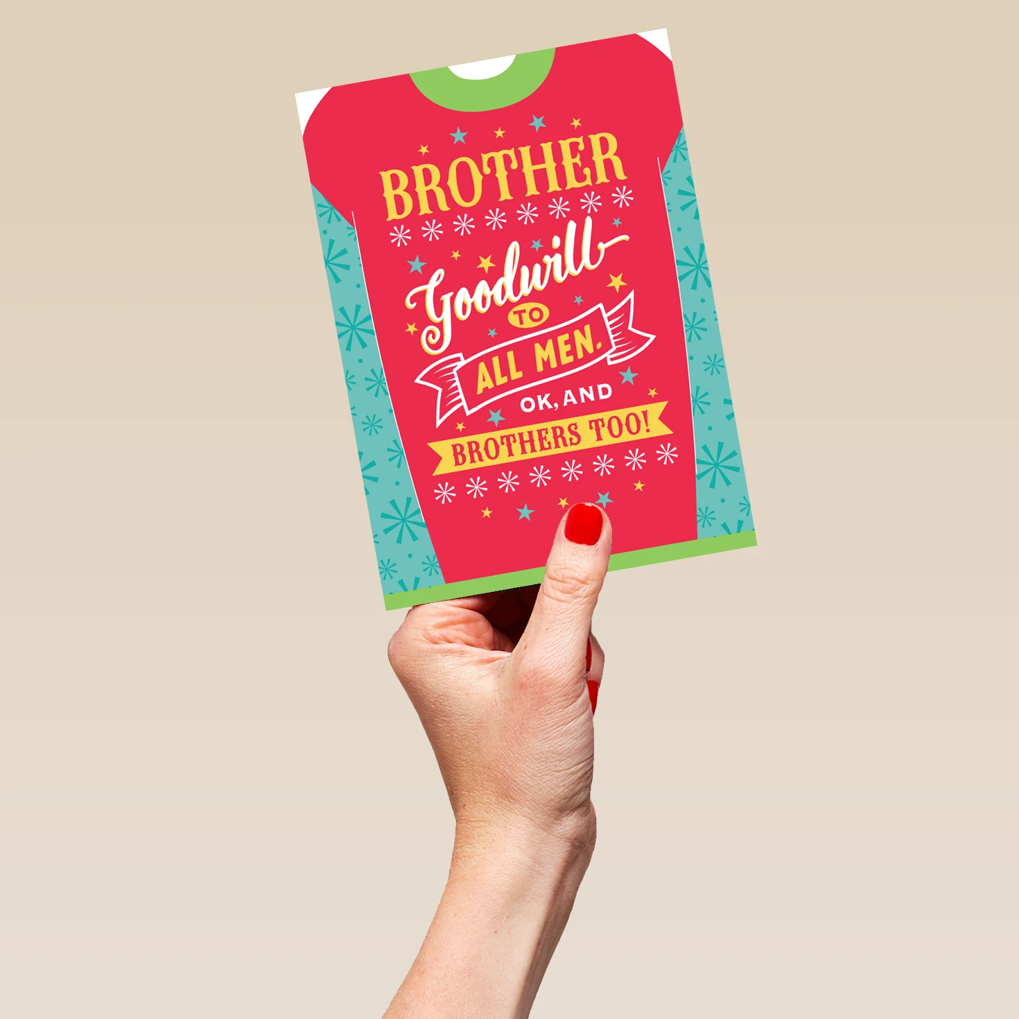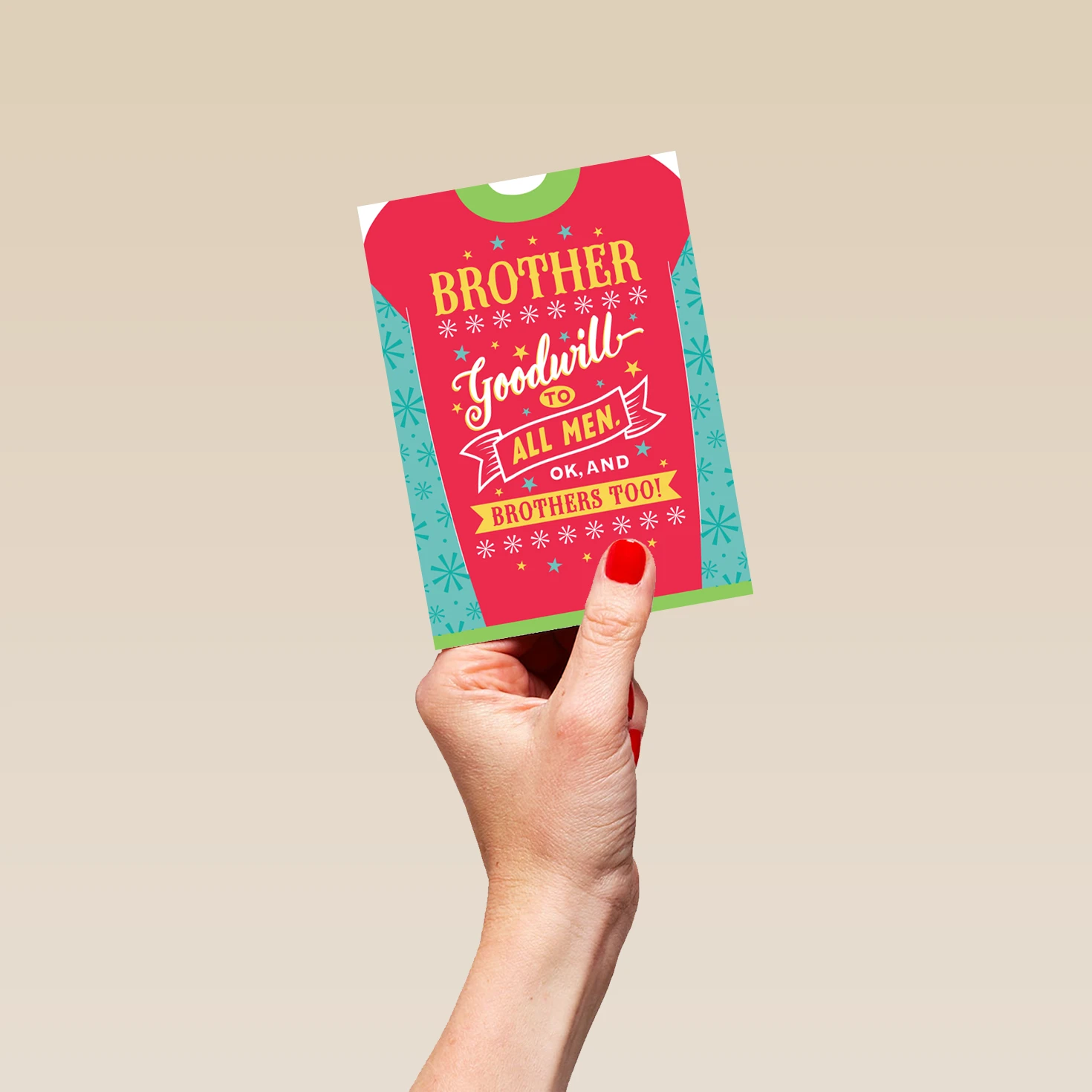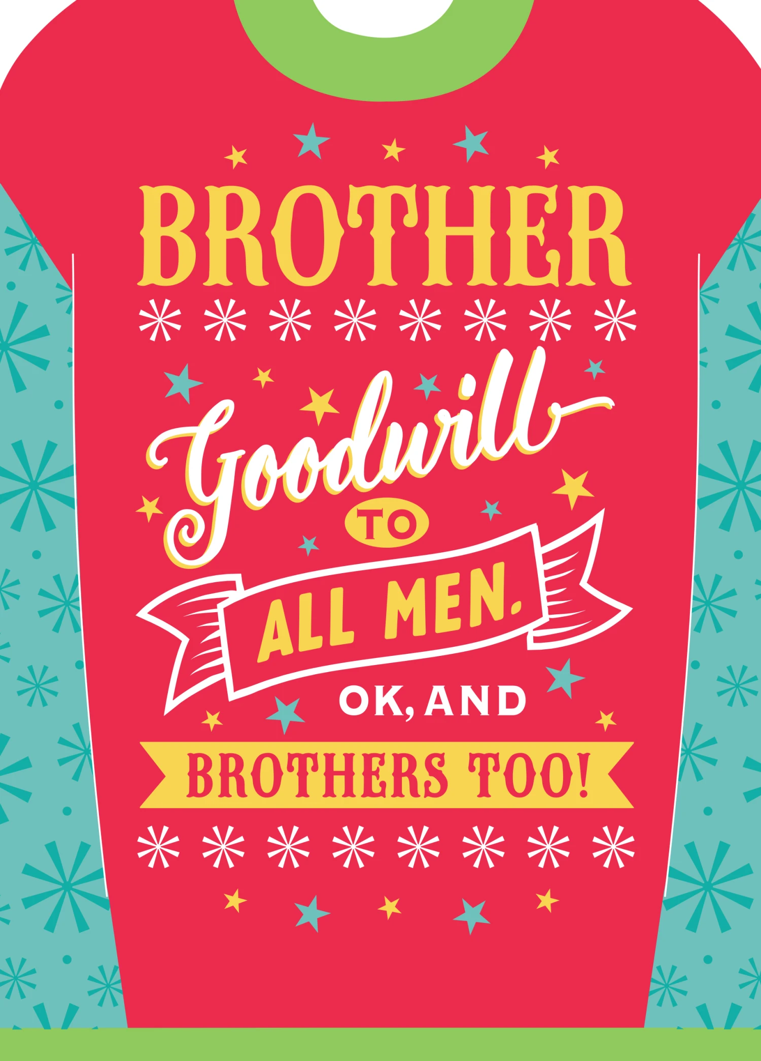 Show them you care with a personalised brother festive sweater Christmas card from Hallmark. Our greetings cards are printed on premium quality, FSC®-certified card & delivered nationwide. This card is available as standard 12cm by 16.7cm and large 15.5cm by 21.6cm.