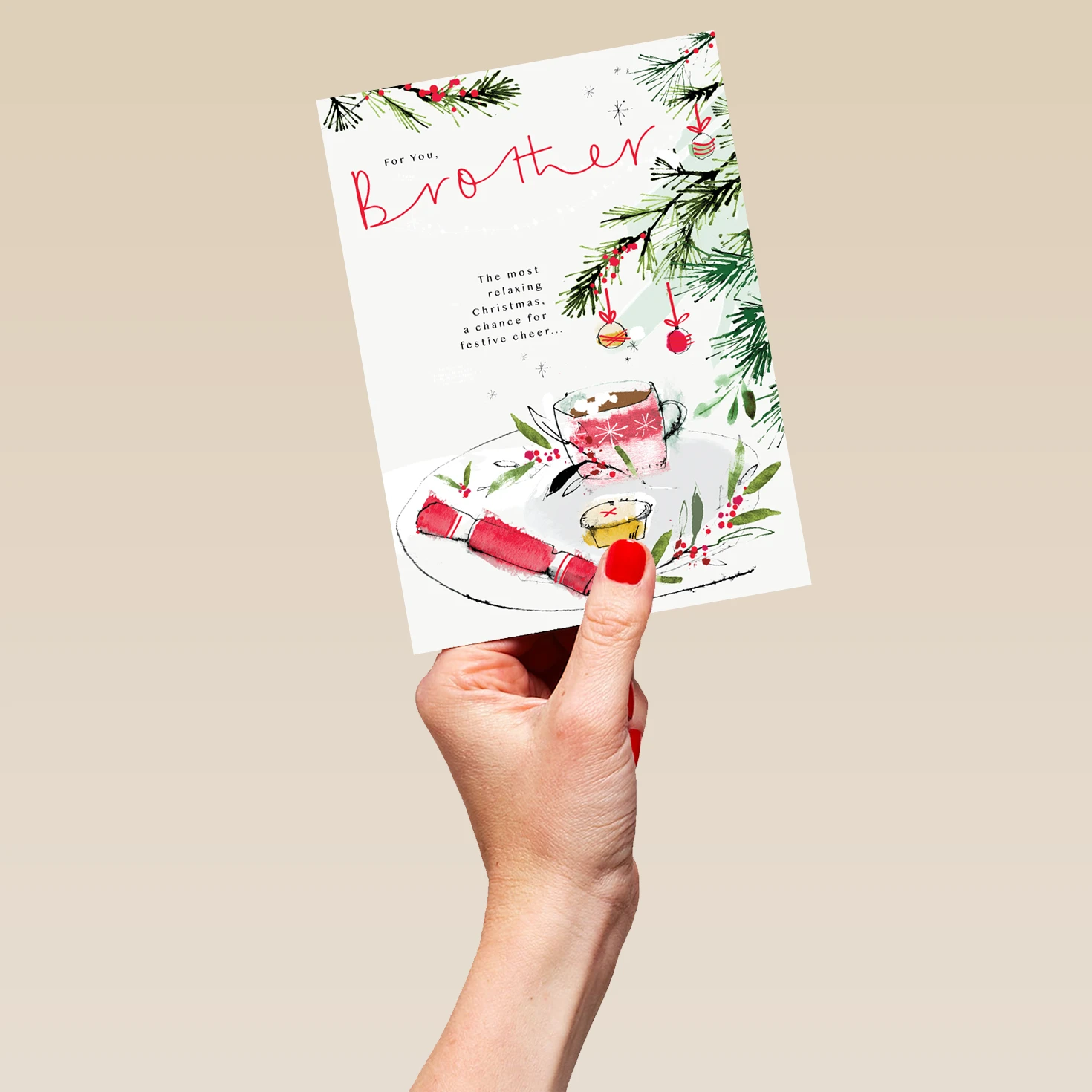 Pod Personalised Brother Mince Pie And Cracker Christmas Card