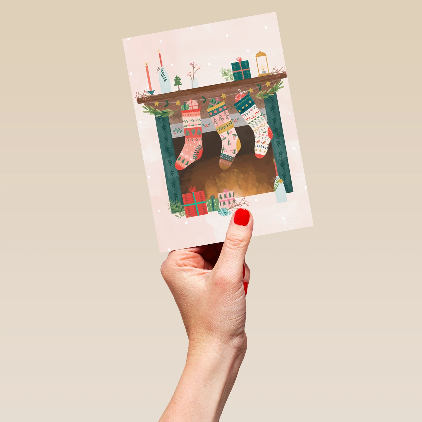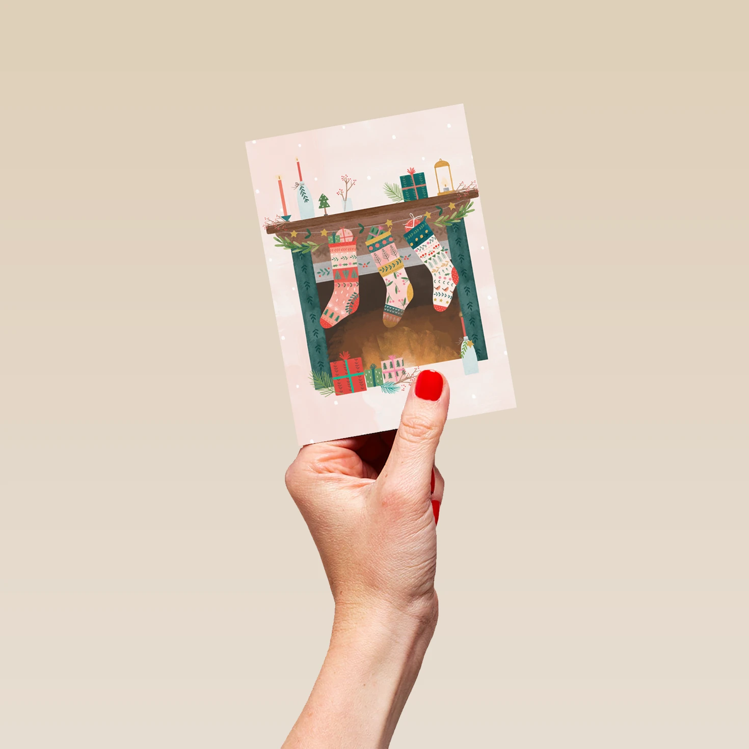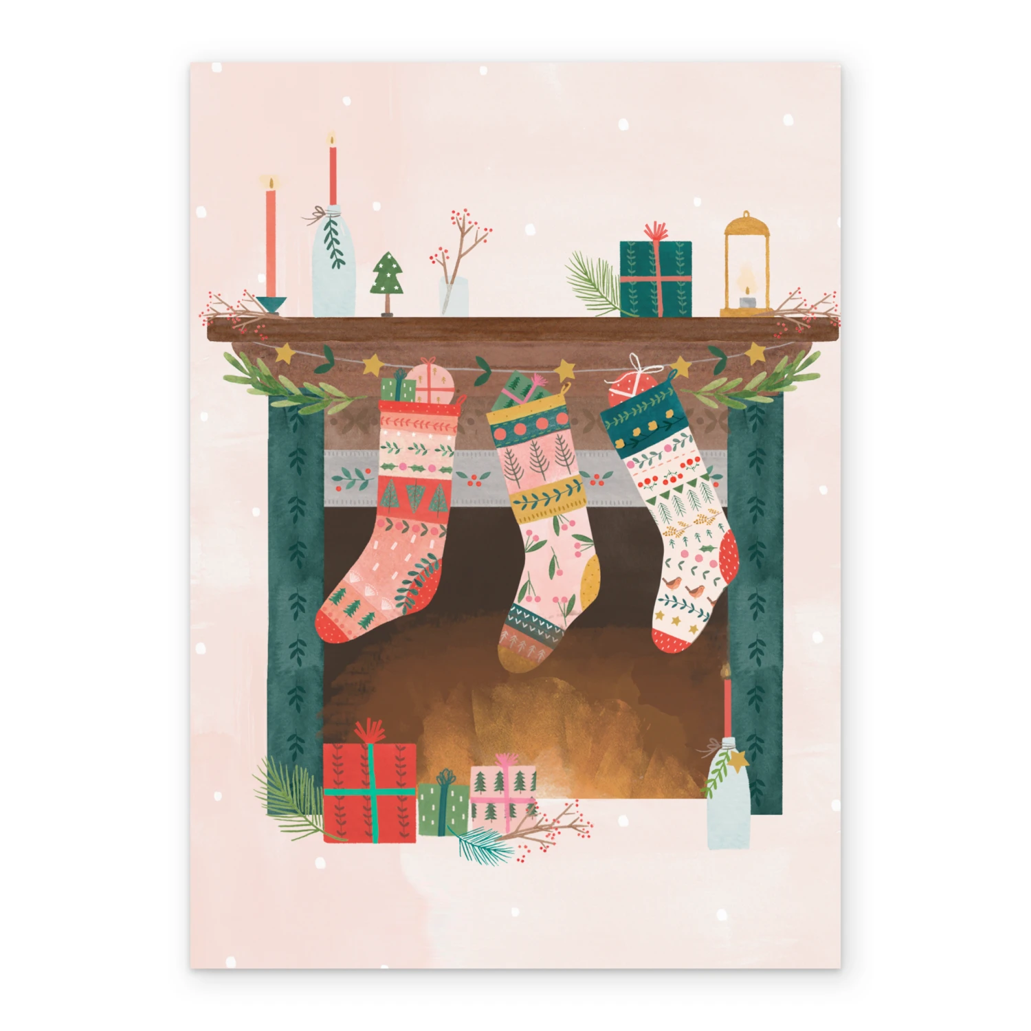 Show them you care with a personalised chimney and stockings card from Hallmark. Our Christmas cards are printed on premium quality, FSC®-certified card & delivered nationwide. This card is available as standard 12cm by 16.7cm and large 15.5cm by 21.6cm.