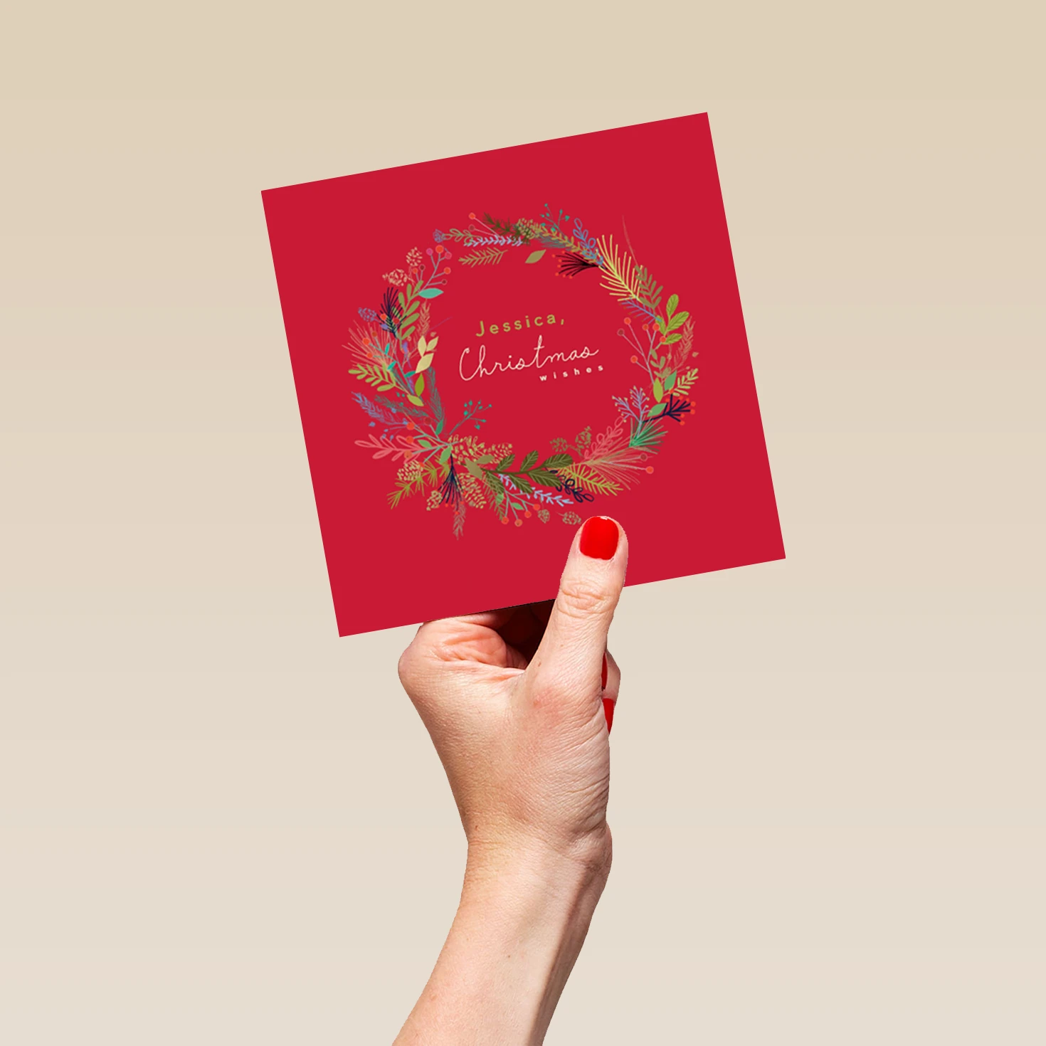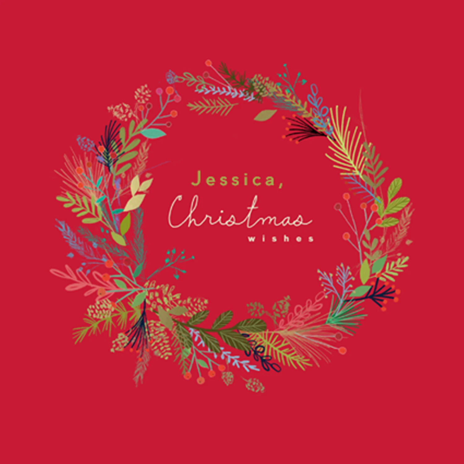 Pod Personalised Christmas Wishes Festive Wreath Card