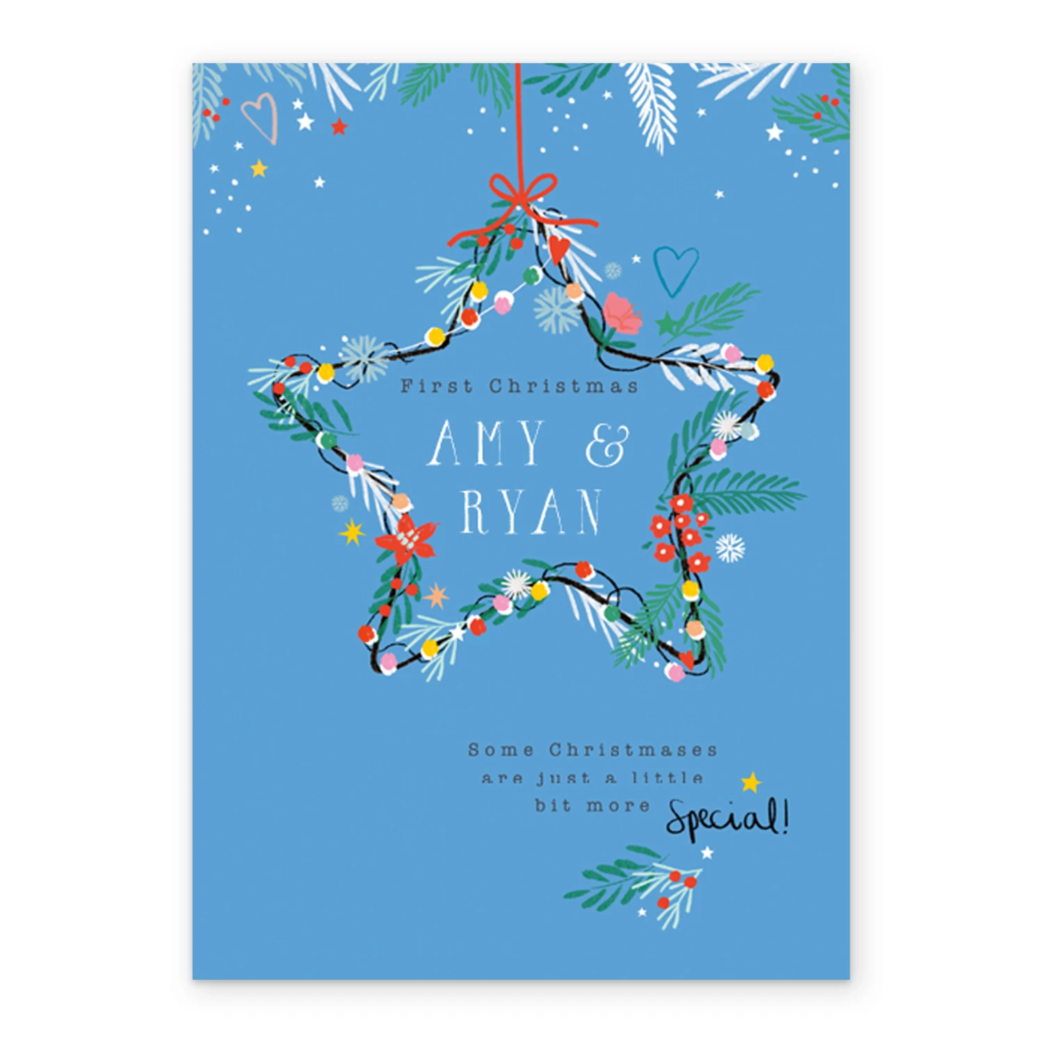 Show them you care with a personalised classic 1st Christmas as a couple editable card from Hallmark. Our greetings cards are printed on premium quality, FSC®-certified card & delivered nationwide. This card is available as standard 12cm by 16.7cm and large 15.5cm by 21.6cm.