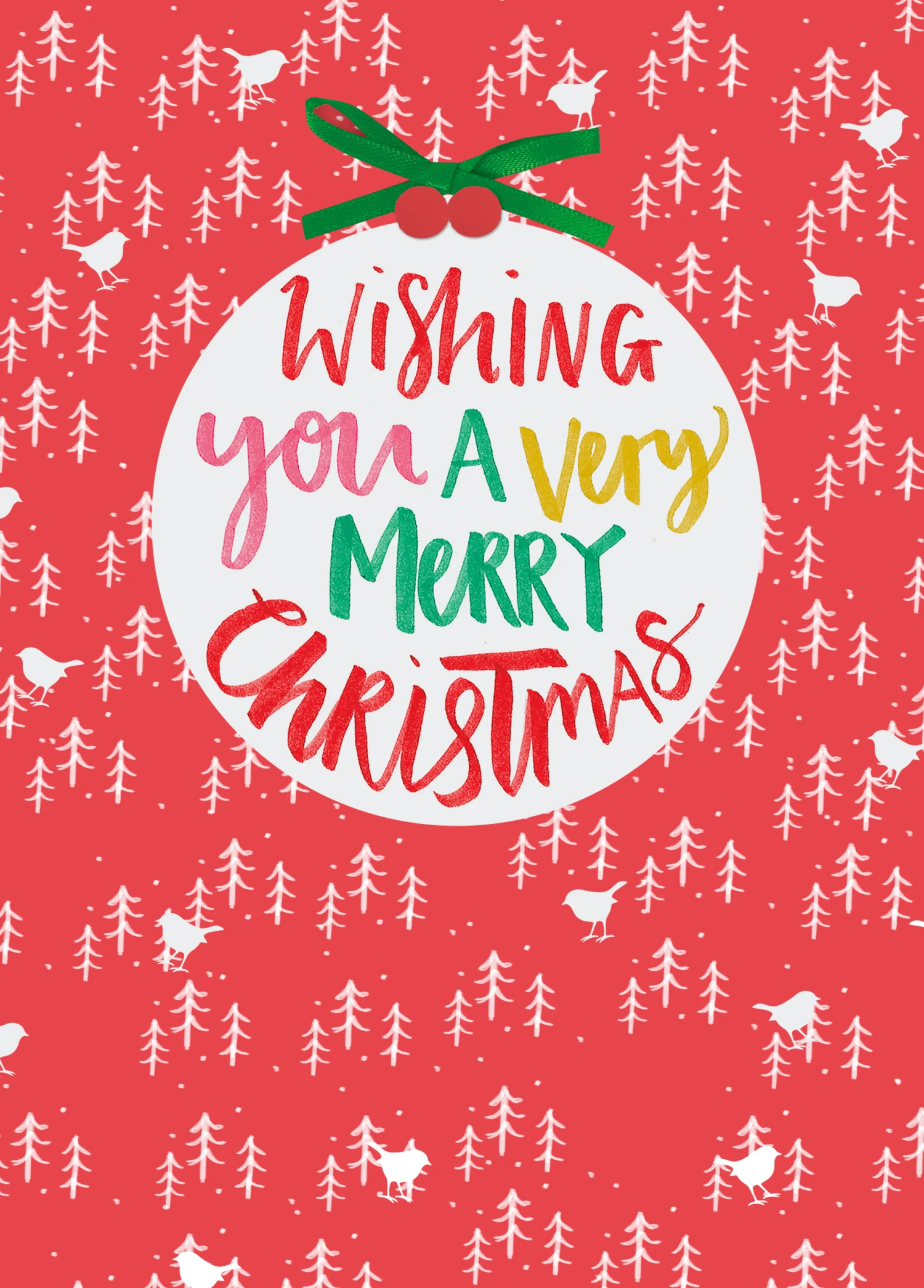 Show them you care with a personalised classic Christmas text merry bauble card from Hallmark. Our greetings cards are printed on premium quality, FSC®-certified card & delivered nationwide. This card is available as standard 12cm by 16.7cm and large 15.5cm by 21.6cm.