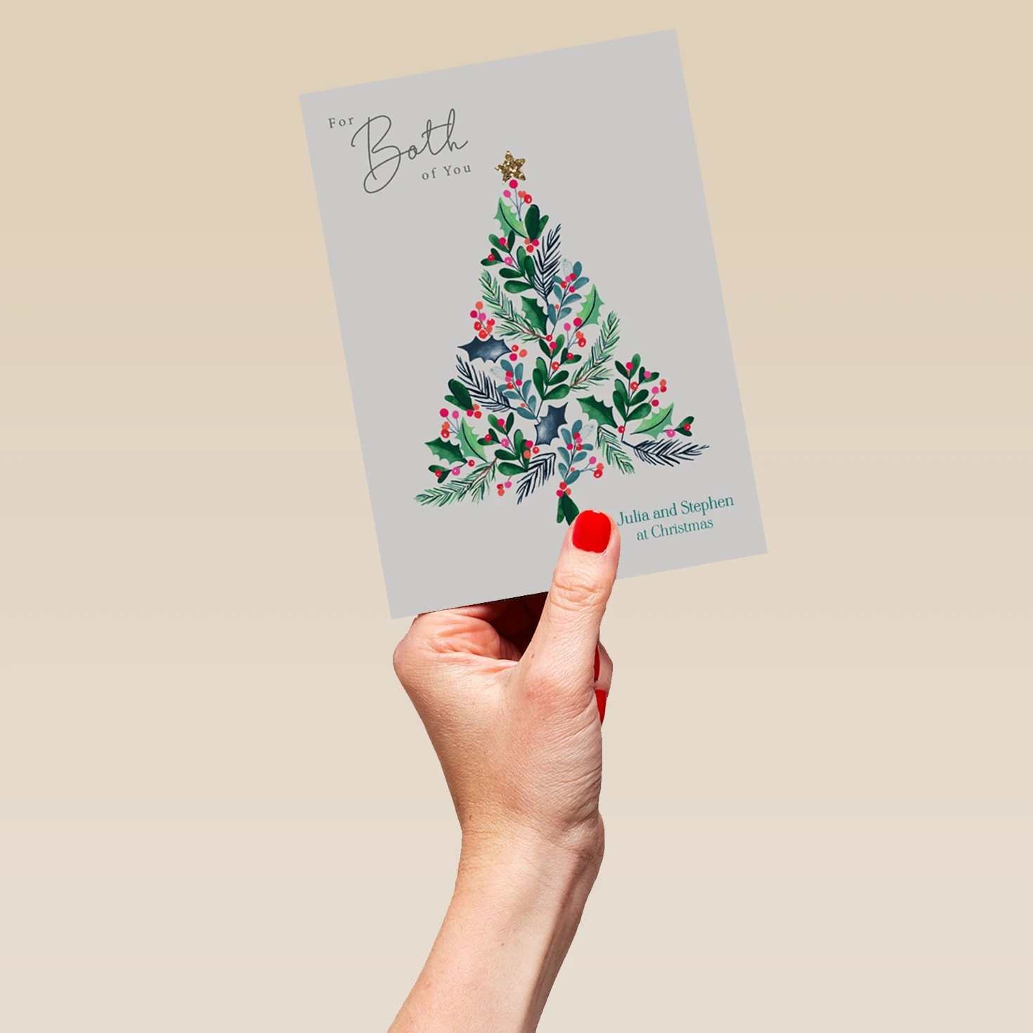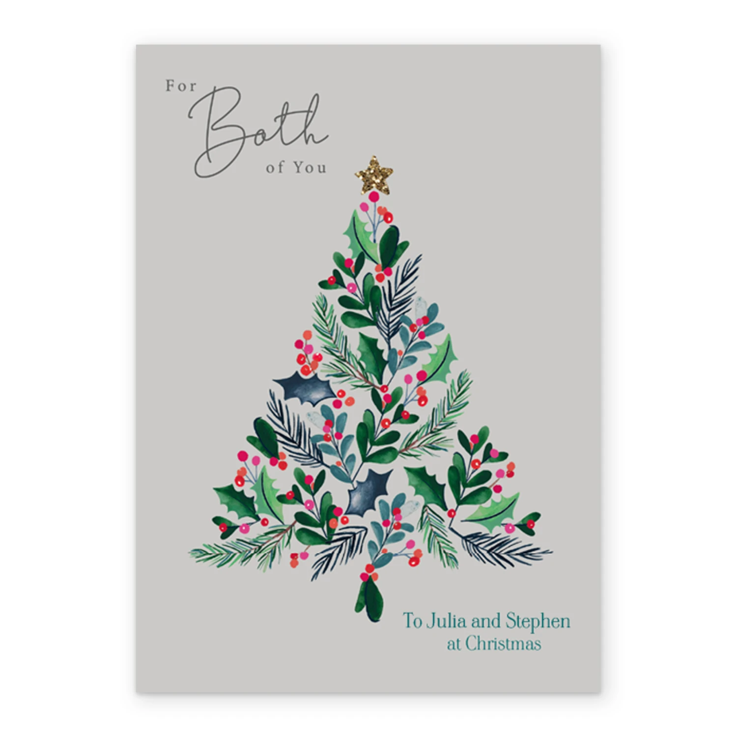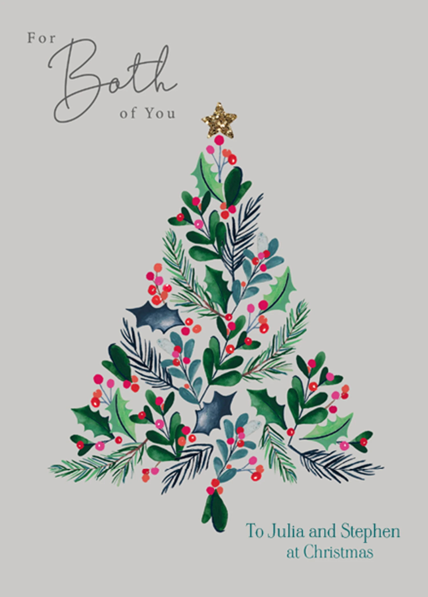 Show them you care with a personalised classic Christmas to both tree card from Hallmark. Our greetings cards are printed on premium quality, FSC®-certified card & delivered nationwide. This card is available as standard 12cm by 16.7cm and large 15.5cm by 21.6cm.