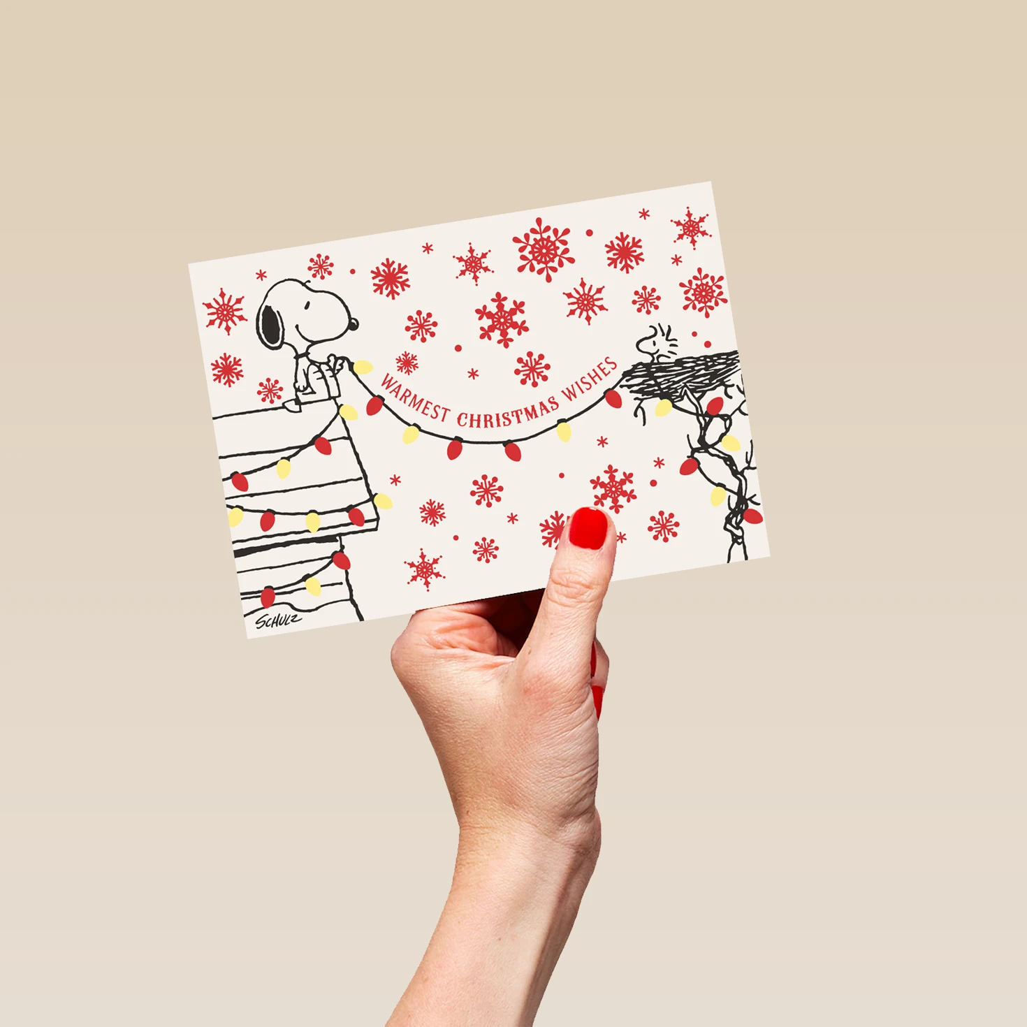 Pod Personalised Classic PEANUTS SNOOPY Fairy Lights Christmas Card