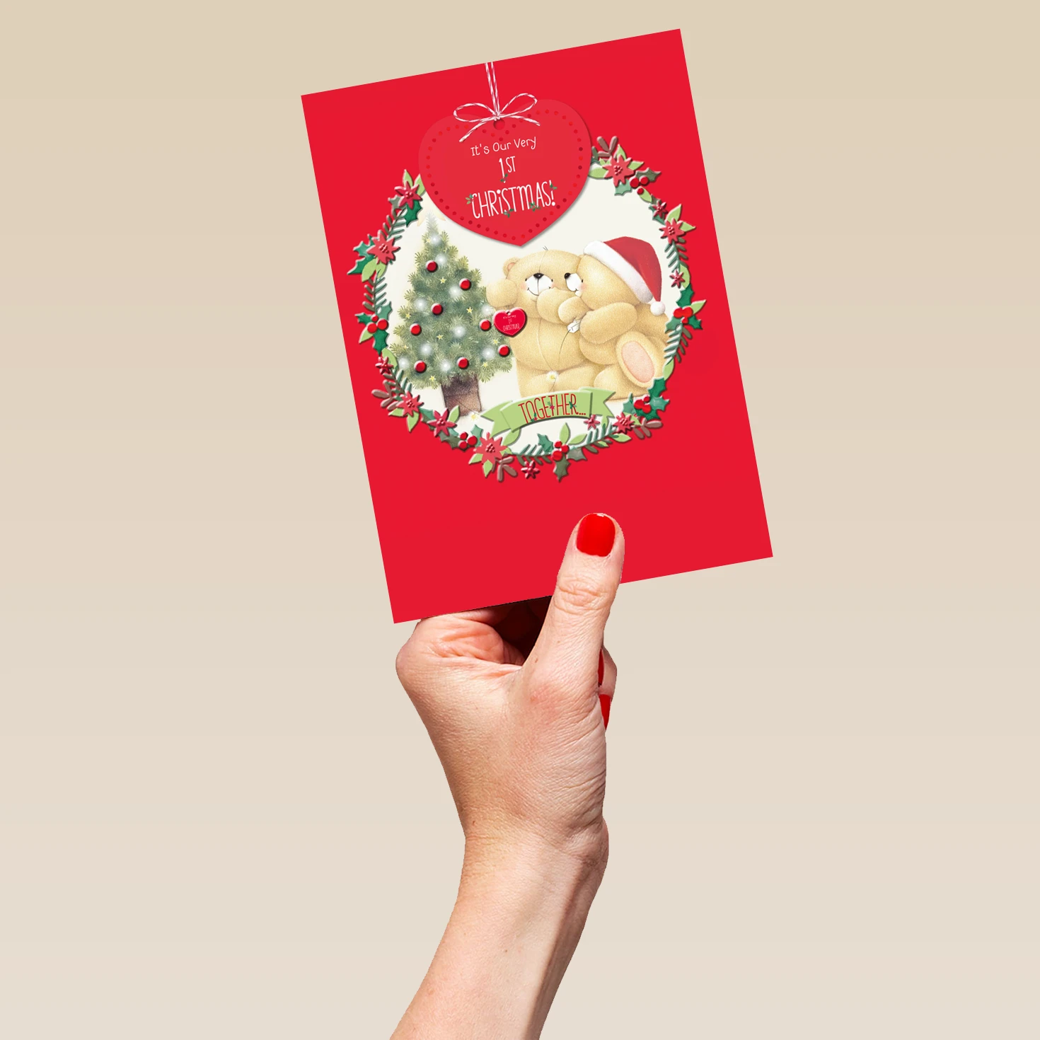 Show them you care with a personalised Forever Friends first Christmas together card from Hallmark. Our Christmas cards are printed on premium quality, FSC®-certified card & delivered nationwide. This card is available as standard 12cm by 16.7cm and large 15.5cm by 21.6cm.