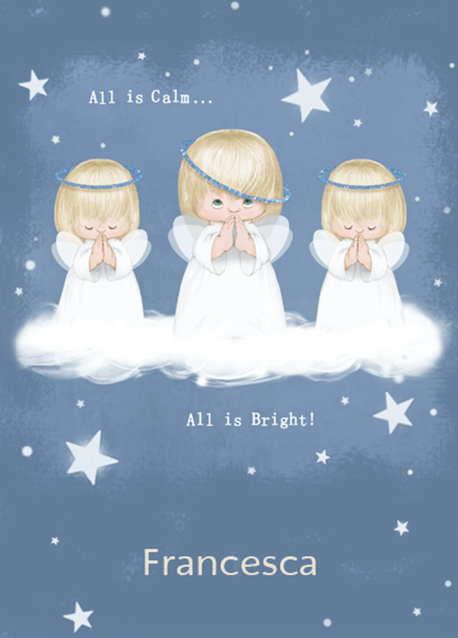 Pod Personalised Cute Angels Starry Night Christmas Card