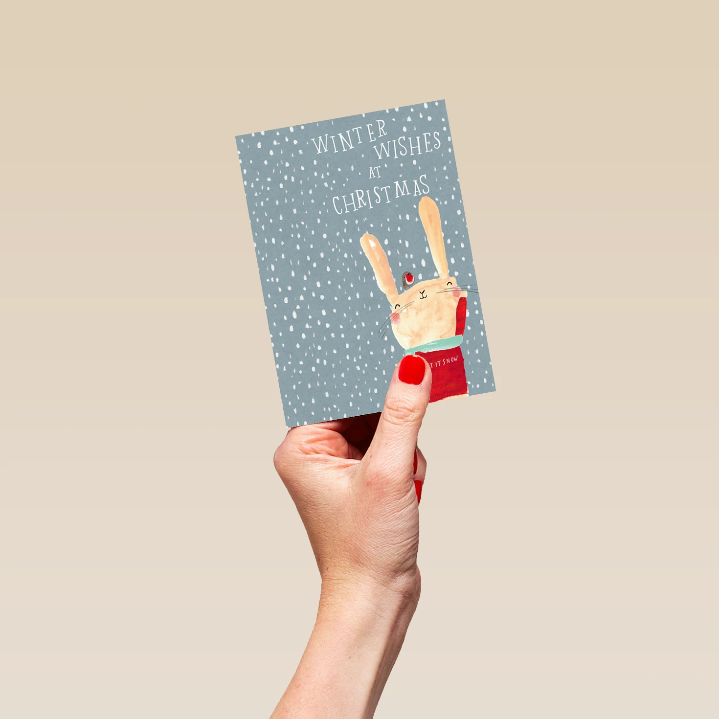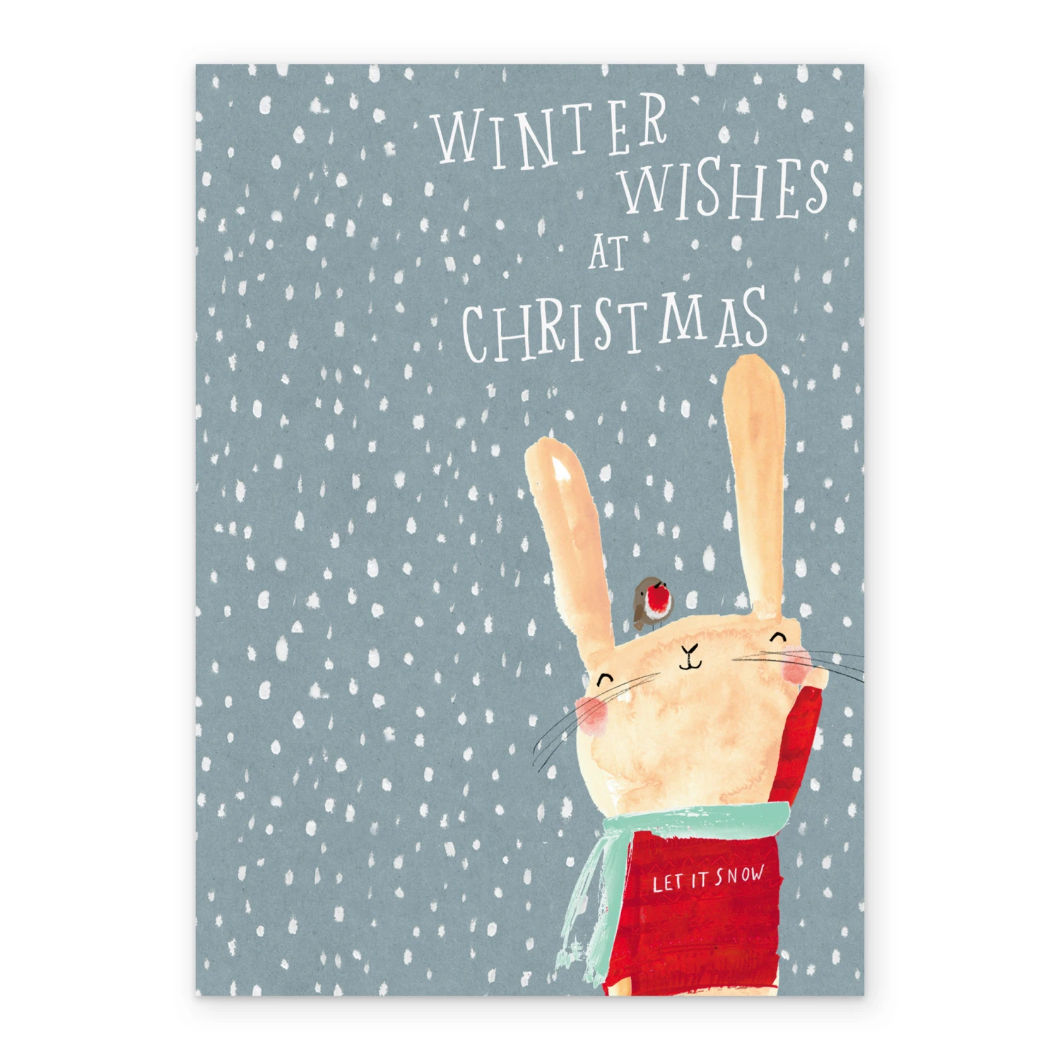 Show them you care with a personalised cute Christmas kids bunny & robin snow card from Hallmark. Our greetings cards are printed on premium quality, FSC®-certified card & delivered nationwide. This card is available as standard 12cm by 16.7cm and large 15.5cm by 21.6cm.