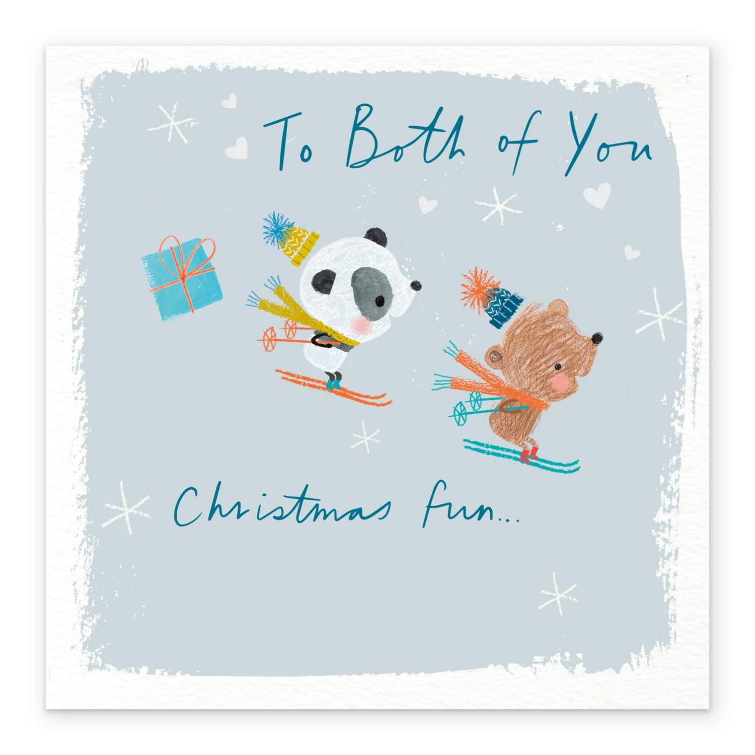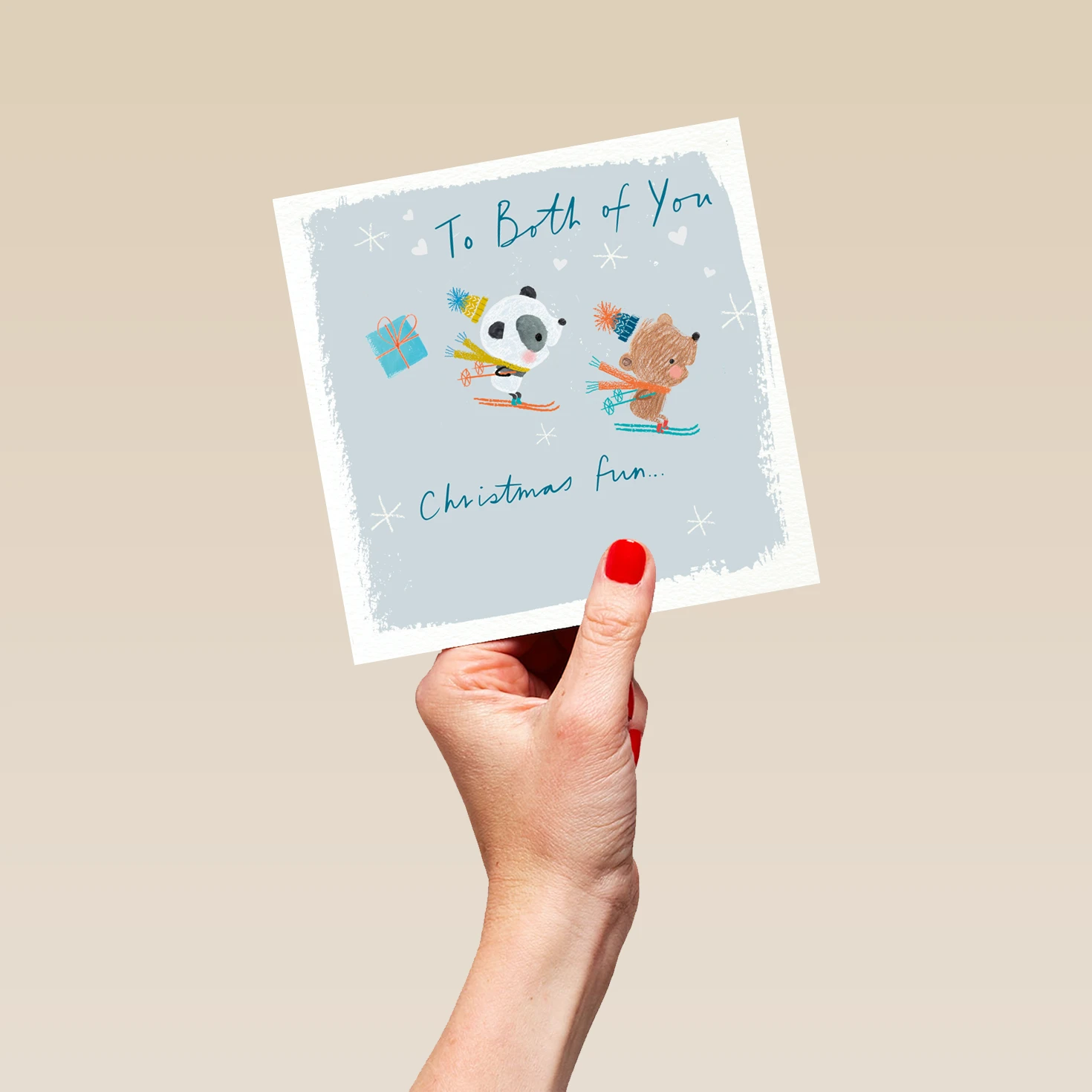 Pod Personalised Cute Christmas Panda Bear Skiing To Both Card