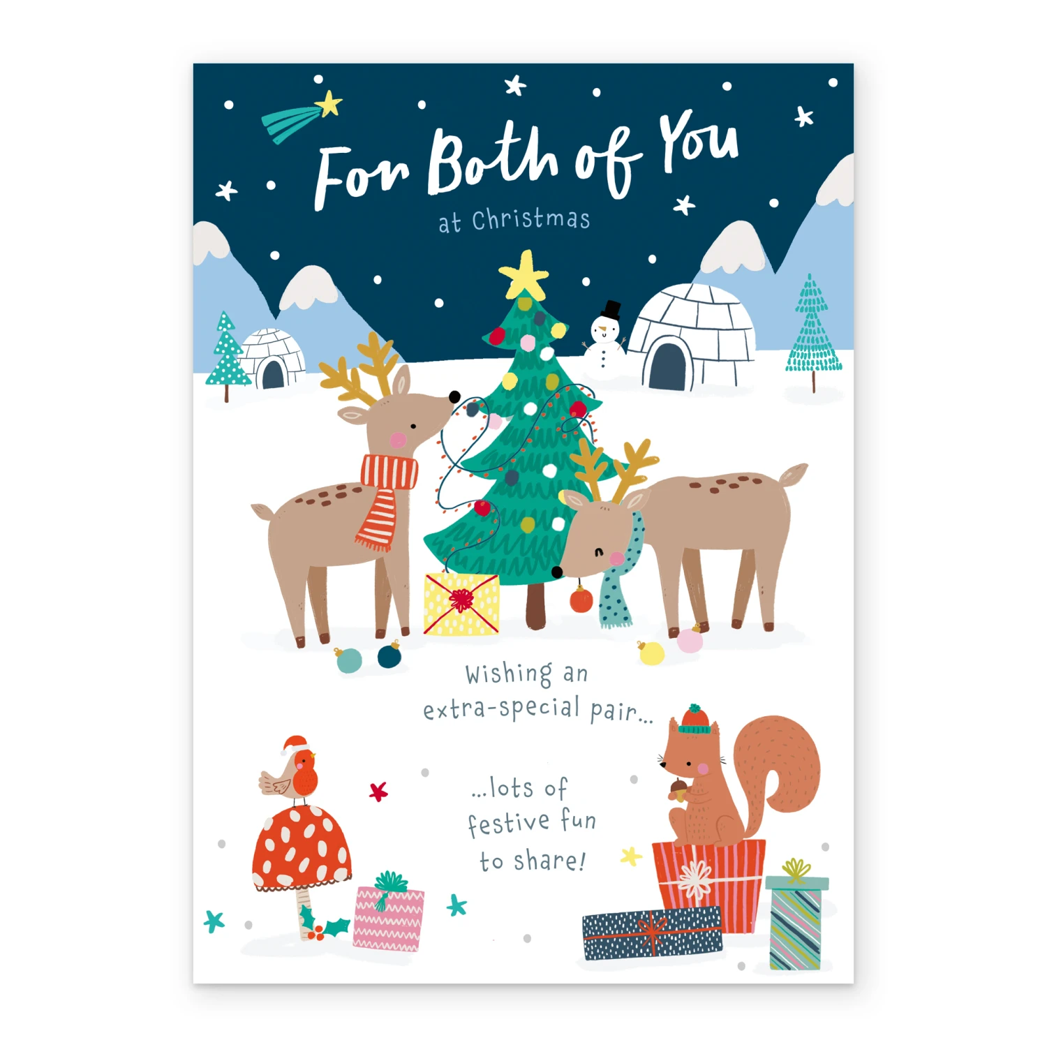 Show them you care with a personalised cute Christmas woodland animals & tree to both card from Hallmark. Our greetings cards are printed on premium quality, FSC®-certified card & delivered nationwide. This card is available as standard 12cm by 16.7cm and large 15.5cm by 21.6cm.