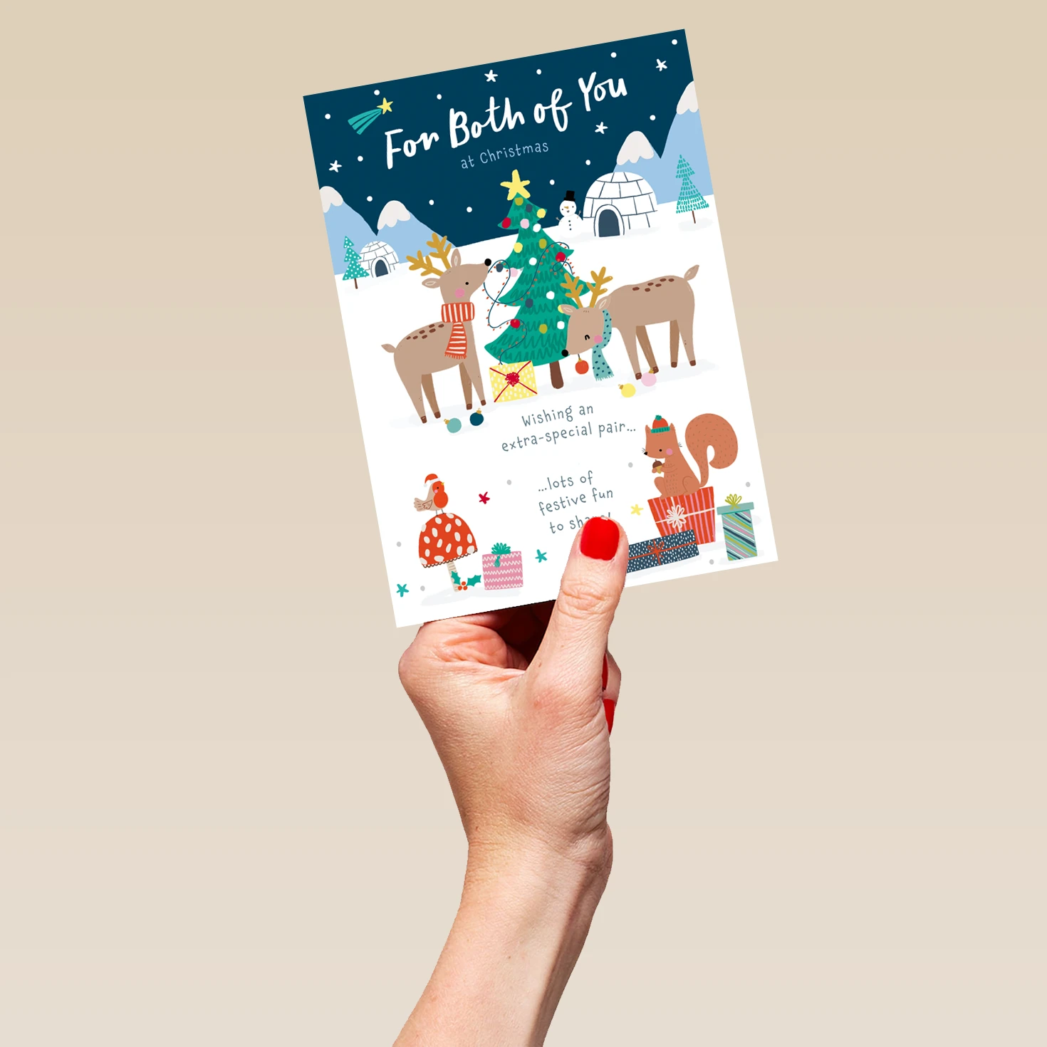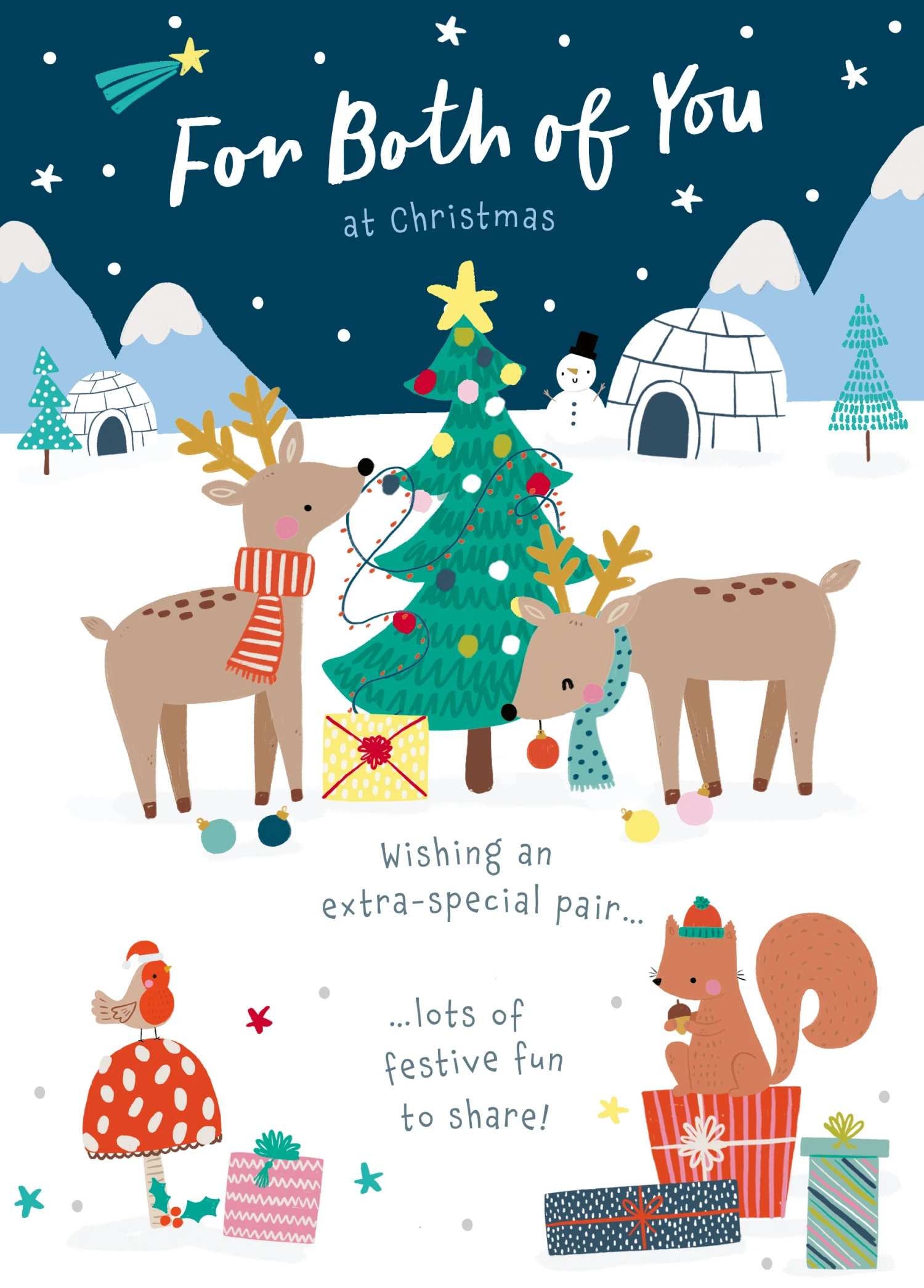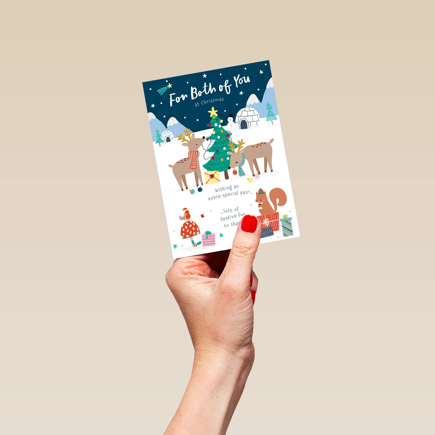 Pod Personalised Cute Christmas Woodland Animals & Tree To Both Card