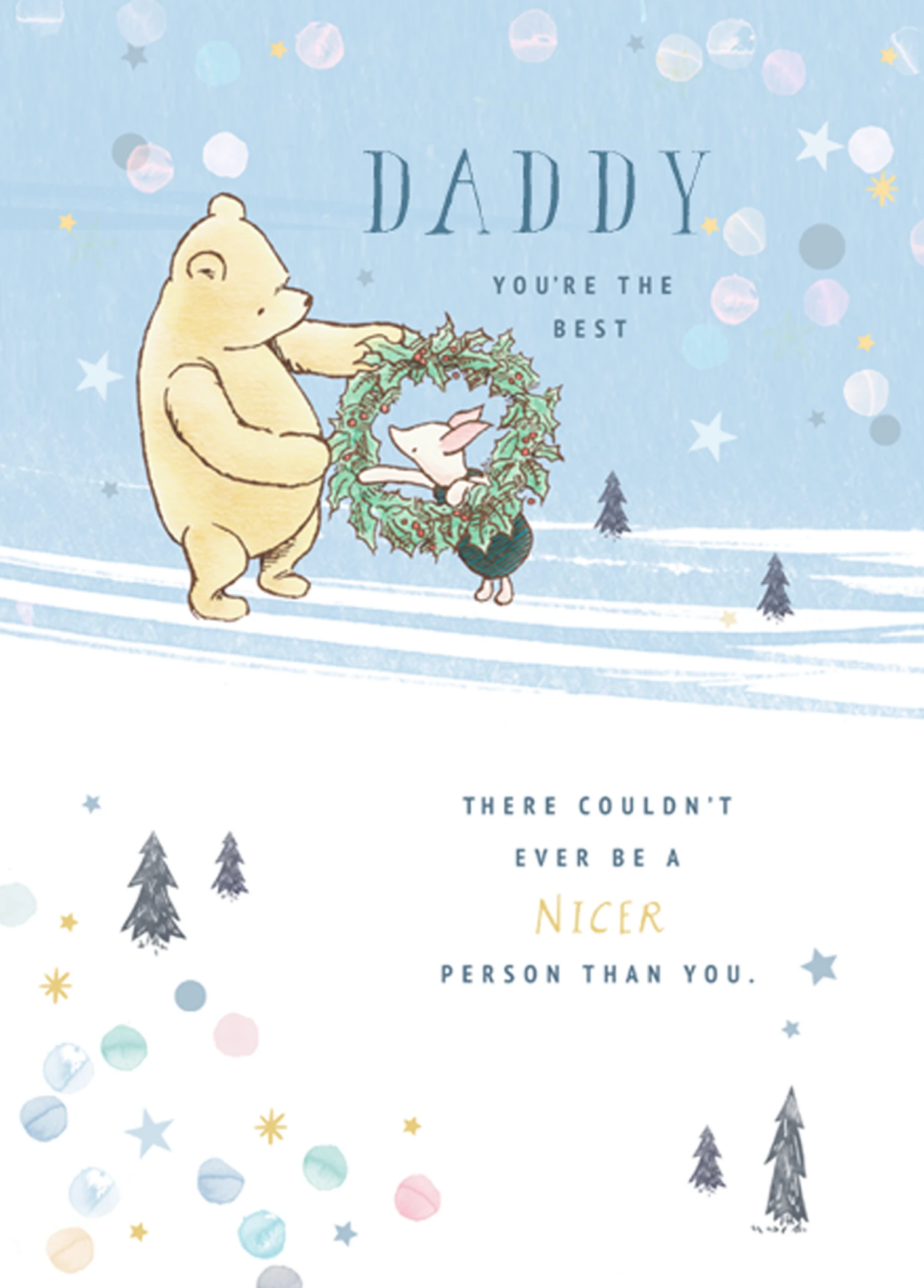 Show them you care with a personalised & editable Winnie The Pooh Christmas card for daddy from Hallmark. Our Christmas cards are printed on premium quality, FSC®-certified card & delivered nationwide. This card is available as standard 12cm by 16.7cm and large 15.5cm by 21.6cm.