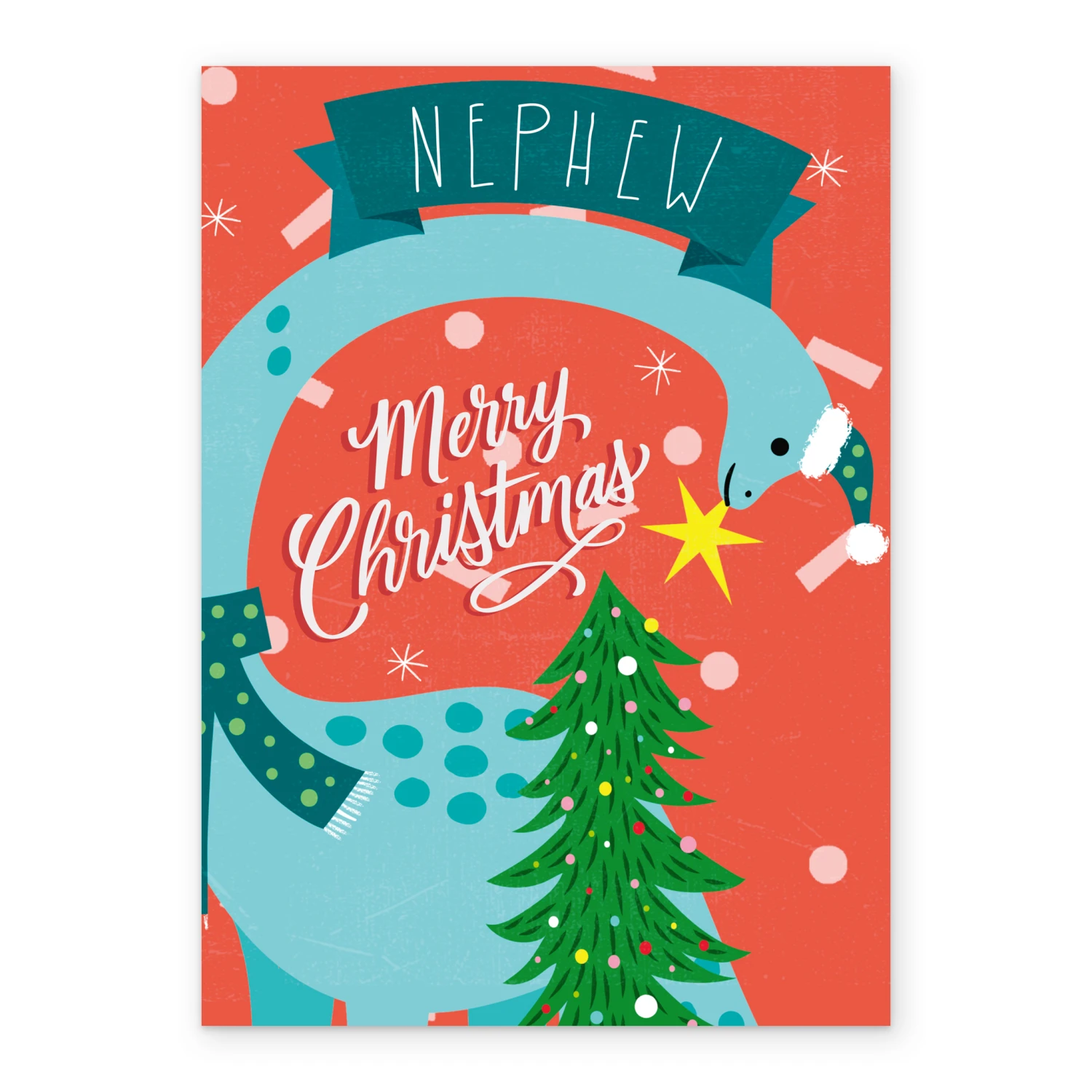 Pod Personalised Cute Dinosaur And Christmas Tree Nephew Christmas Card