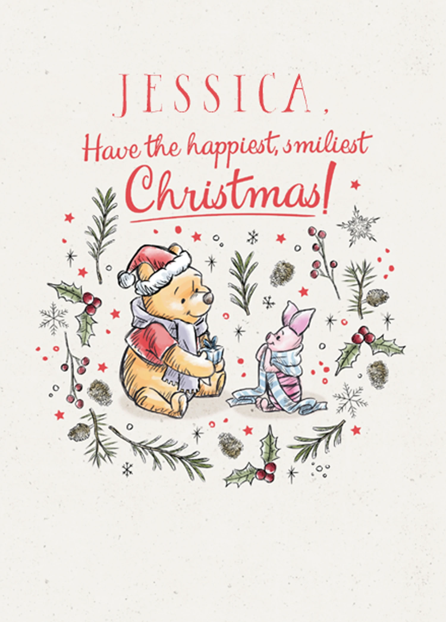 Show them you care with a personalised & editable Winnie The Pooh Christmas card from Hallmark. Our Christmas cards are printed on premium quality, FSC®-certified card & delivered nationwide. This card is available as standard 12cm by 16.7cm and large 15.5cm by 21.6cm.