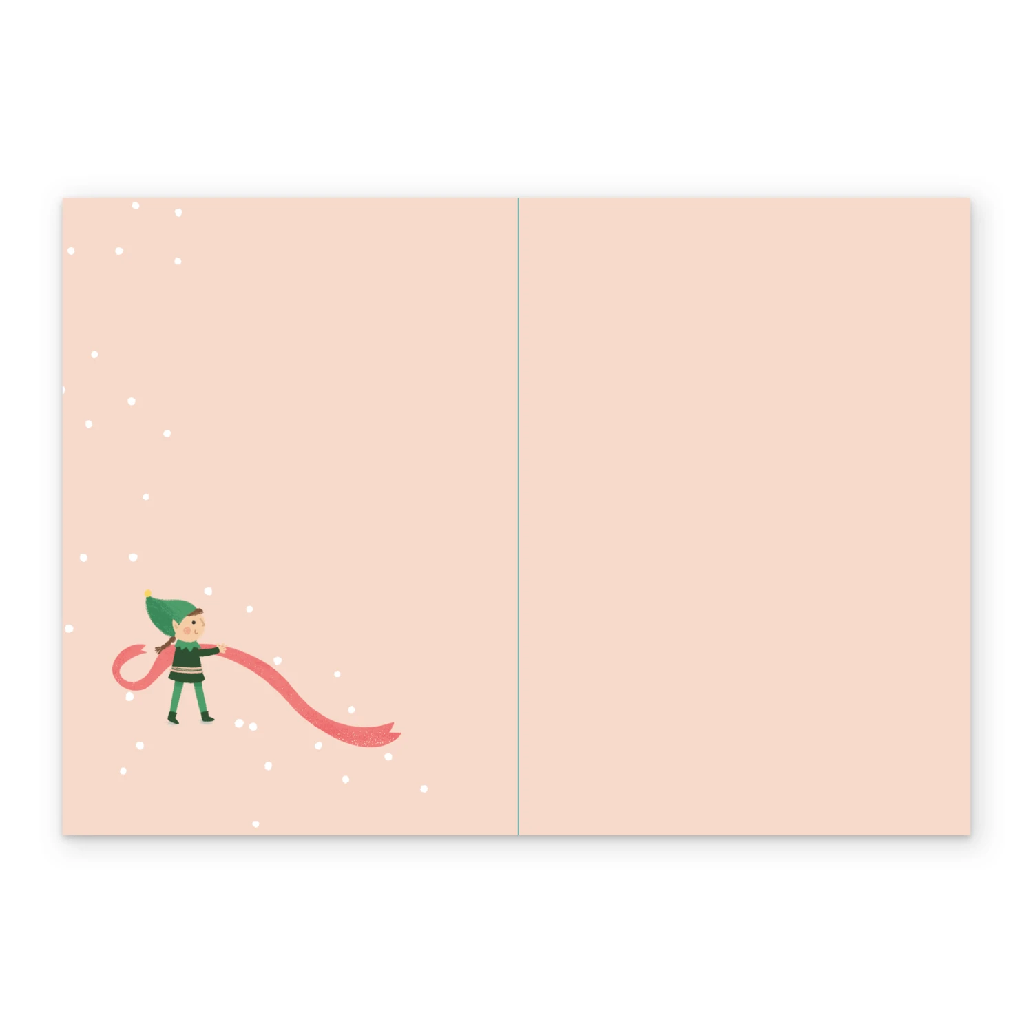 Printed on premium-quality board, this card features a cute illustration of Santa’s elves decorating a present, and comes complete with a co-ordinating white envelope.