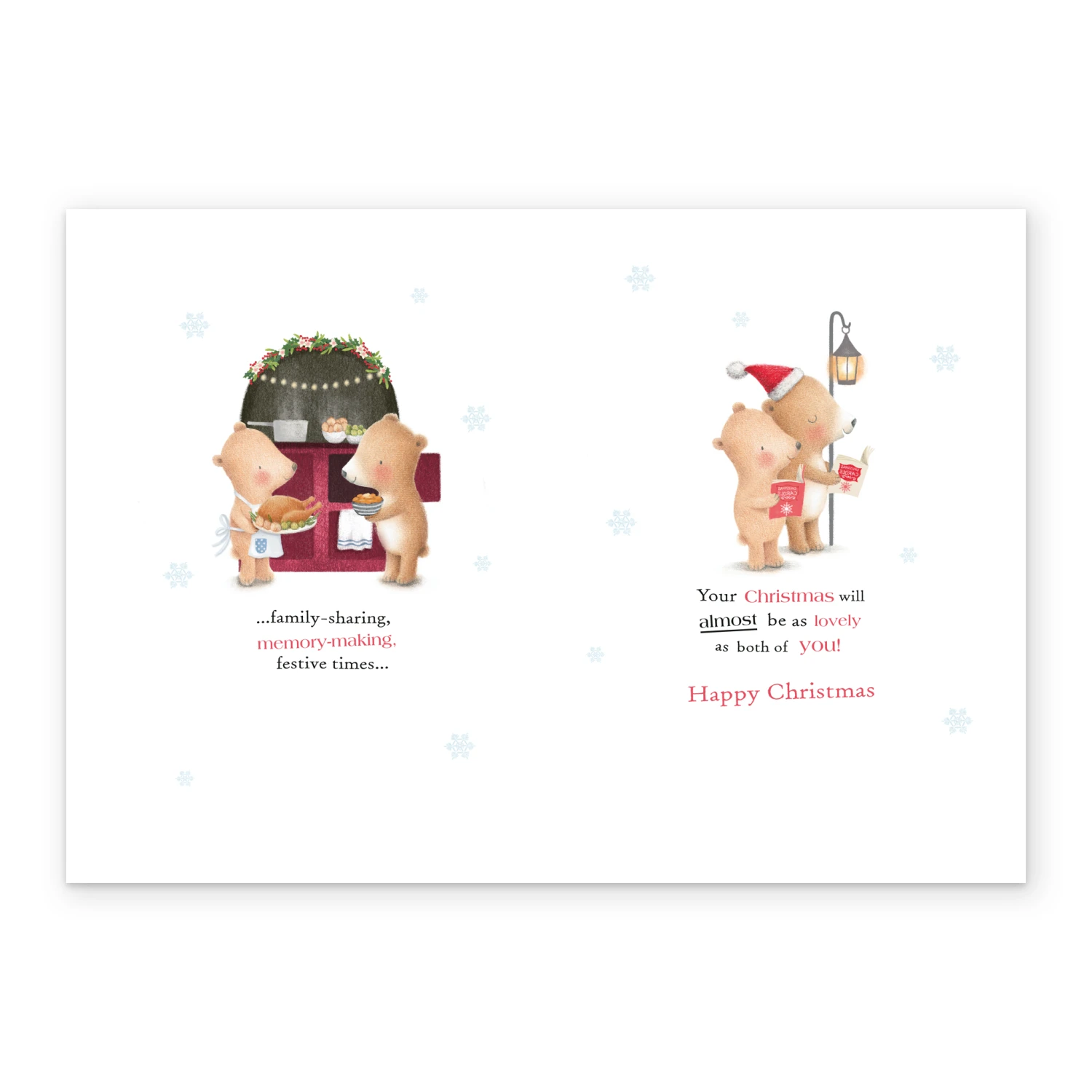 Message inside reads: …family-sharing, memory-making, festive times… Your Christmas will almost be as lovely as both of you! Happy Christmas