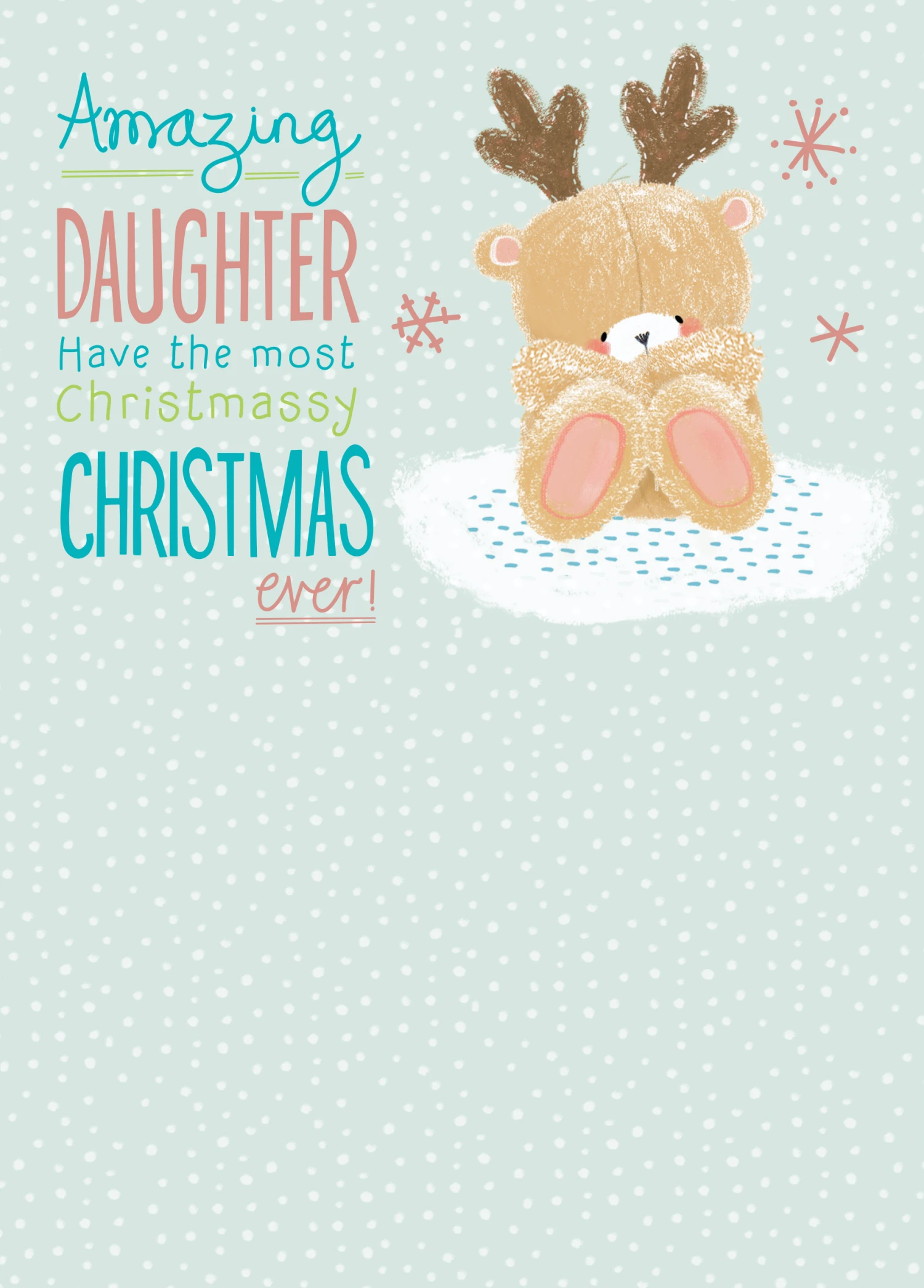 Show them you care with a personalised Christmas card for your daughter from Hallmark. Our Christmas cards are printed on premium quality, FSC®-certified card & delivered nationwide. This card is available as standard 12cm by 16.7cm and large 15.5cm by 21.6cm.