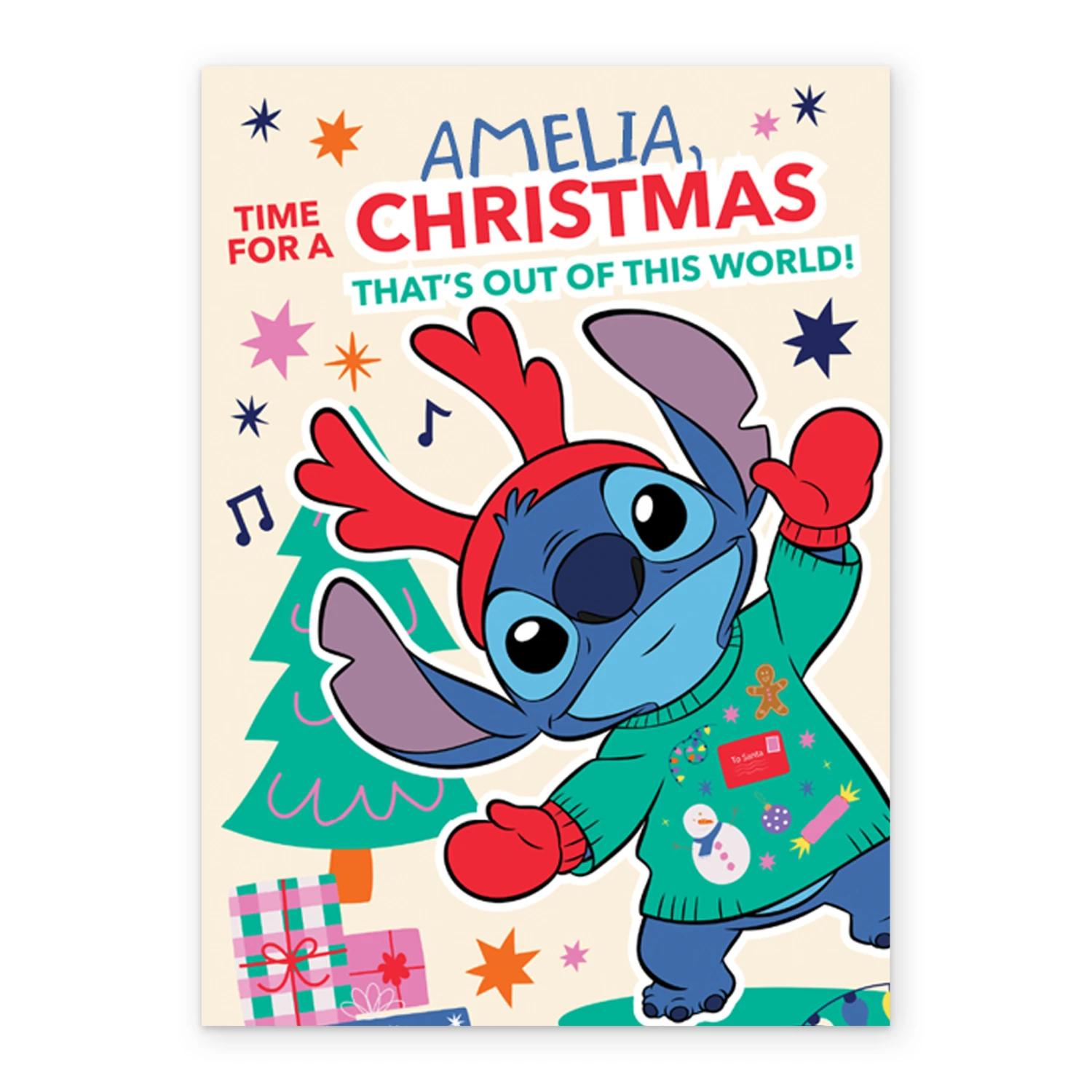 Pod Personalised Cute Kids Disney Lilo & Stitch Christmas Card
