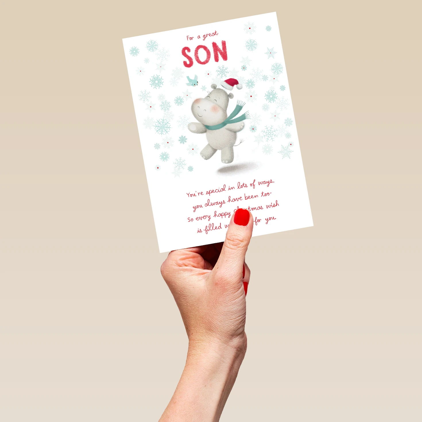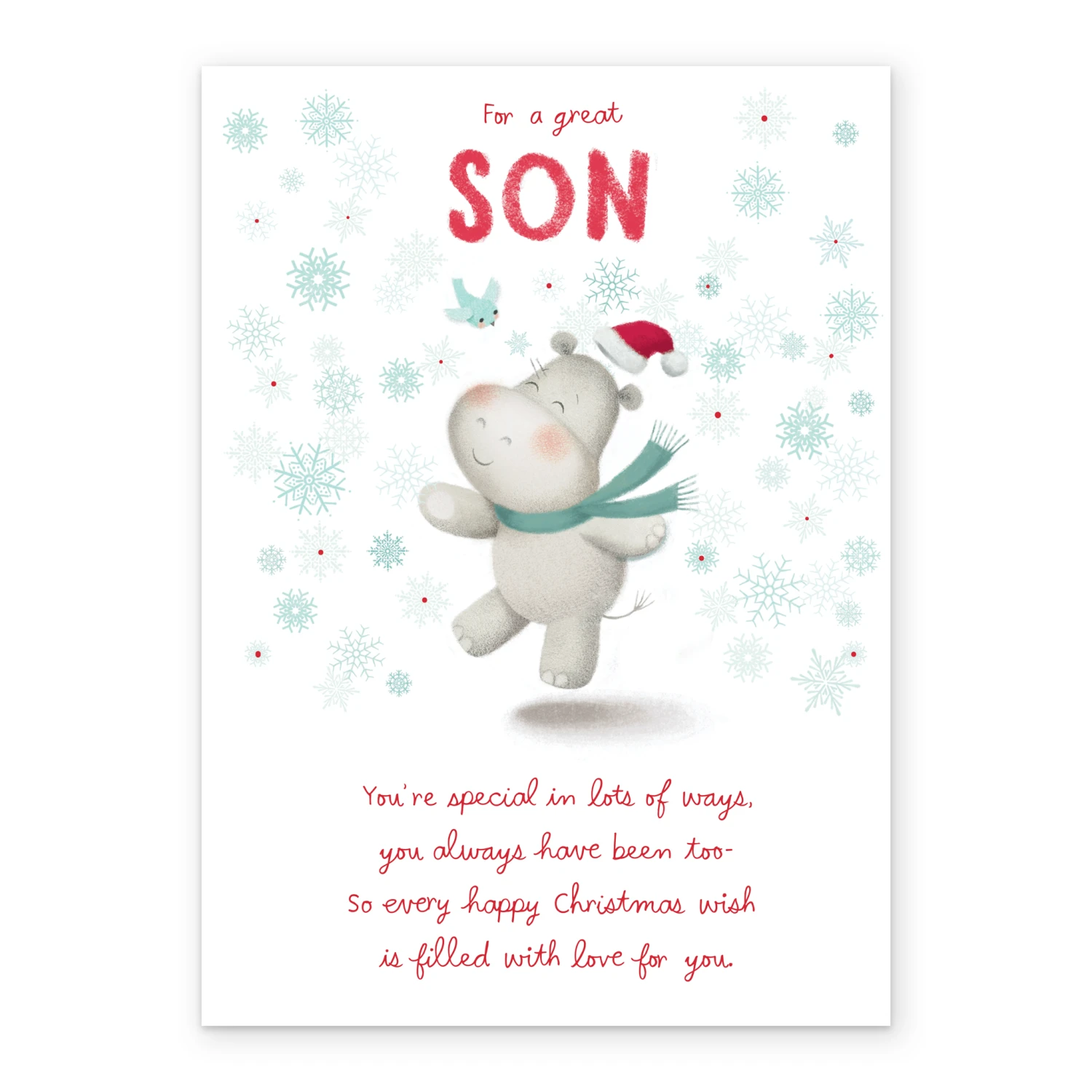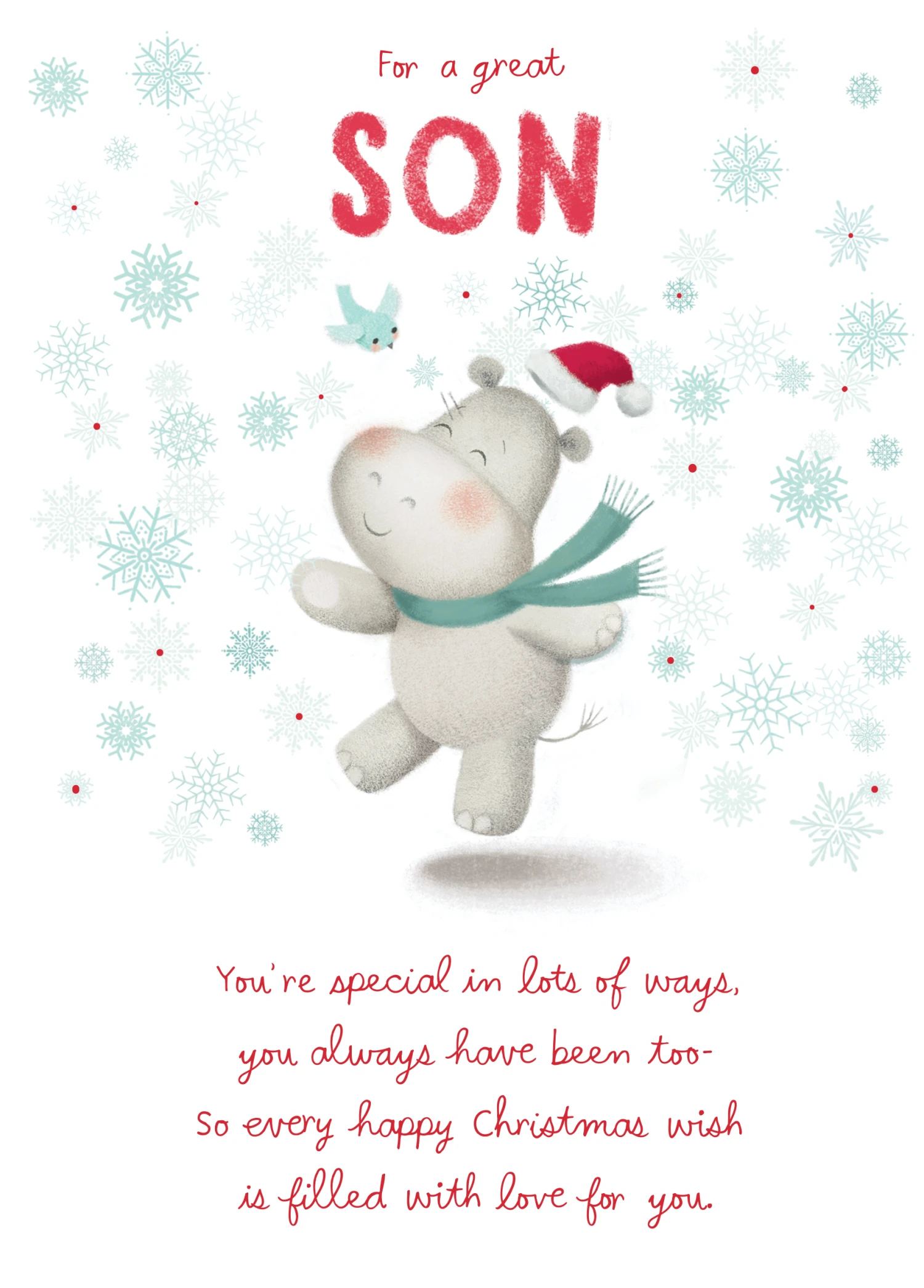 Show them you care with a personalised cute poem son card from Hallmark. Our Christmas cards are printed on premium quality, FSC®-certified card & delivered nationwide. This card is available as standard 12cm by 16.7cm and large 15.5cm by 21.6cm.