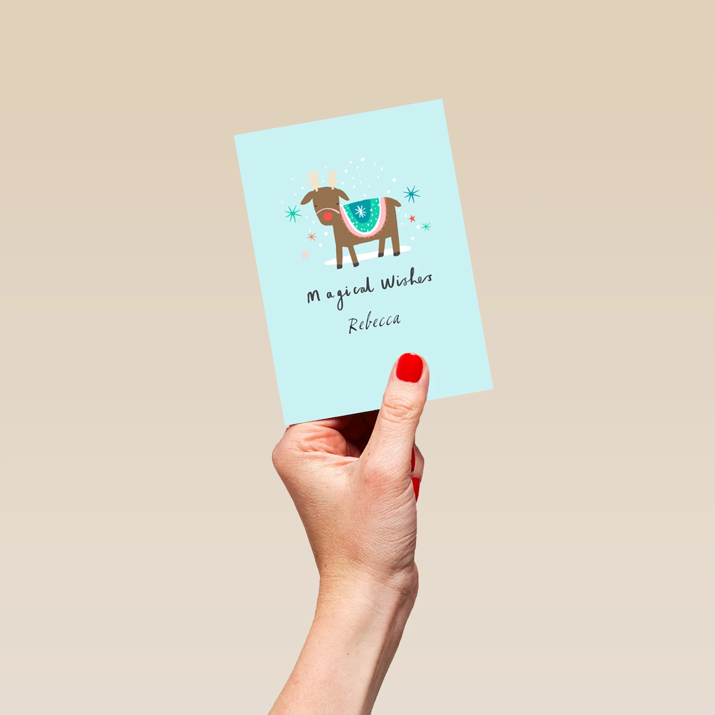 Gift magical festive wishes to all you love, with this cute personalisable Christmas card.