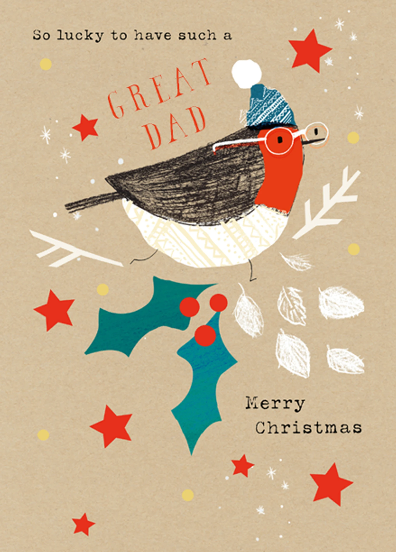 Pod Personalised Dad Classic Robin Holly & Stars Christmas Card