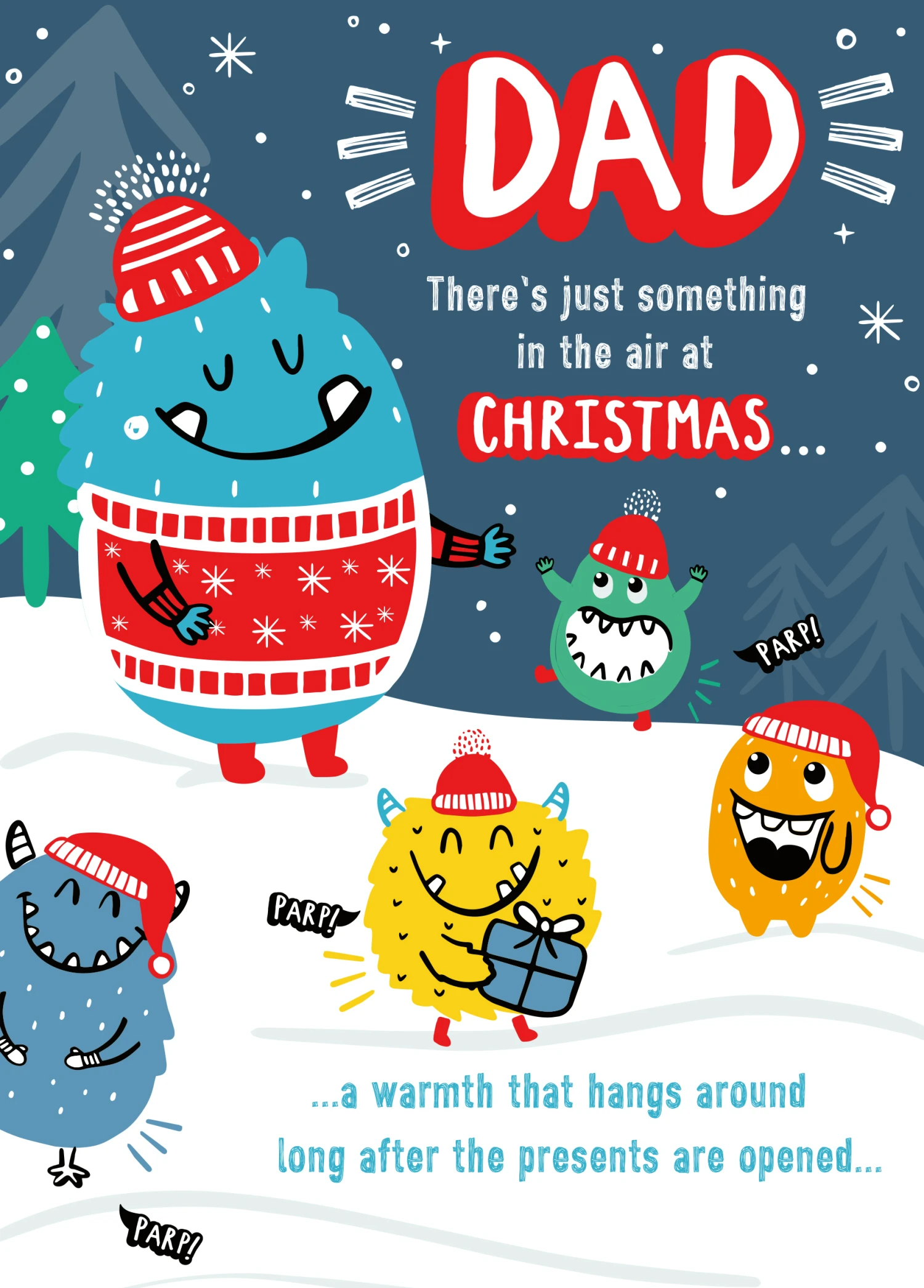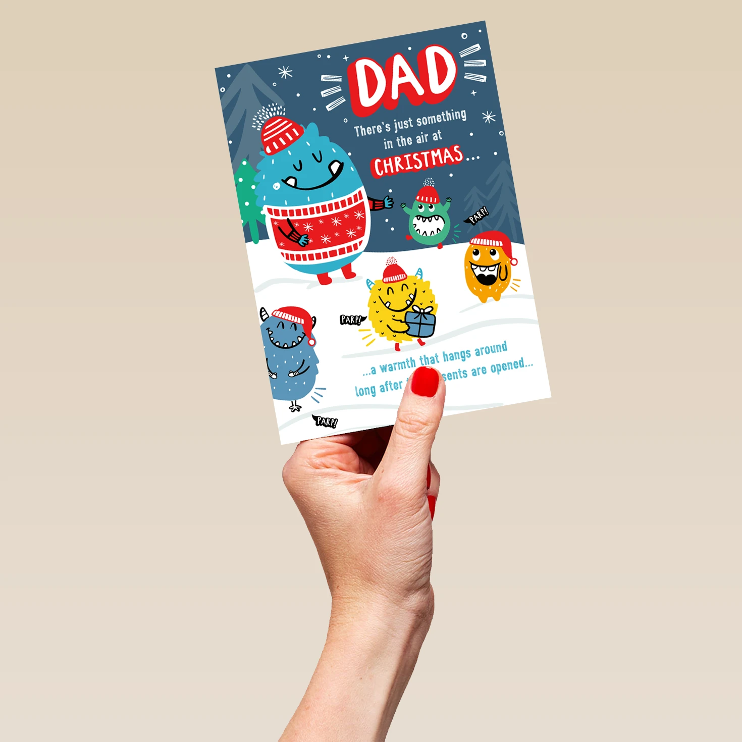 Pod Personalised Dad Funny Monsters Snow Christmas Card