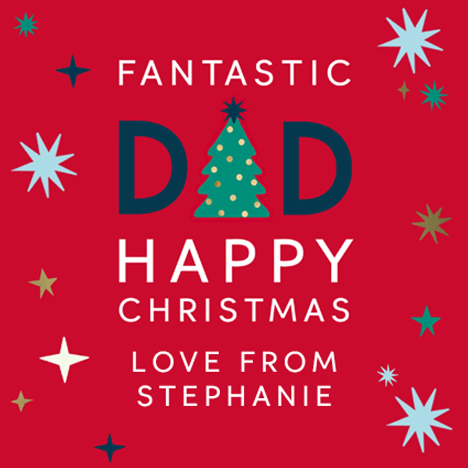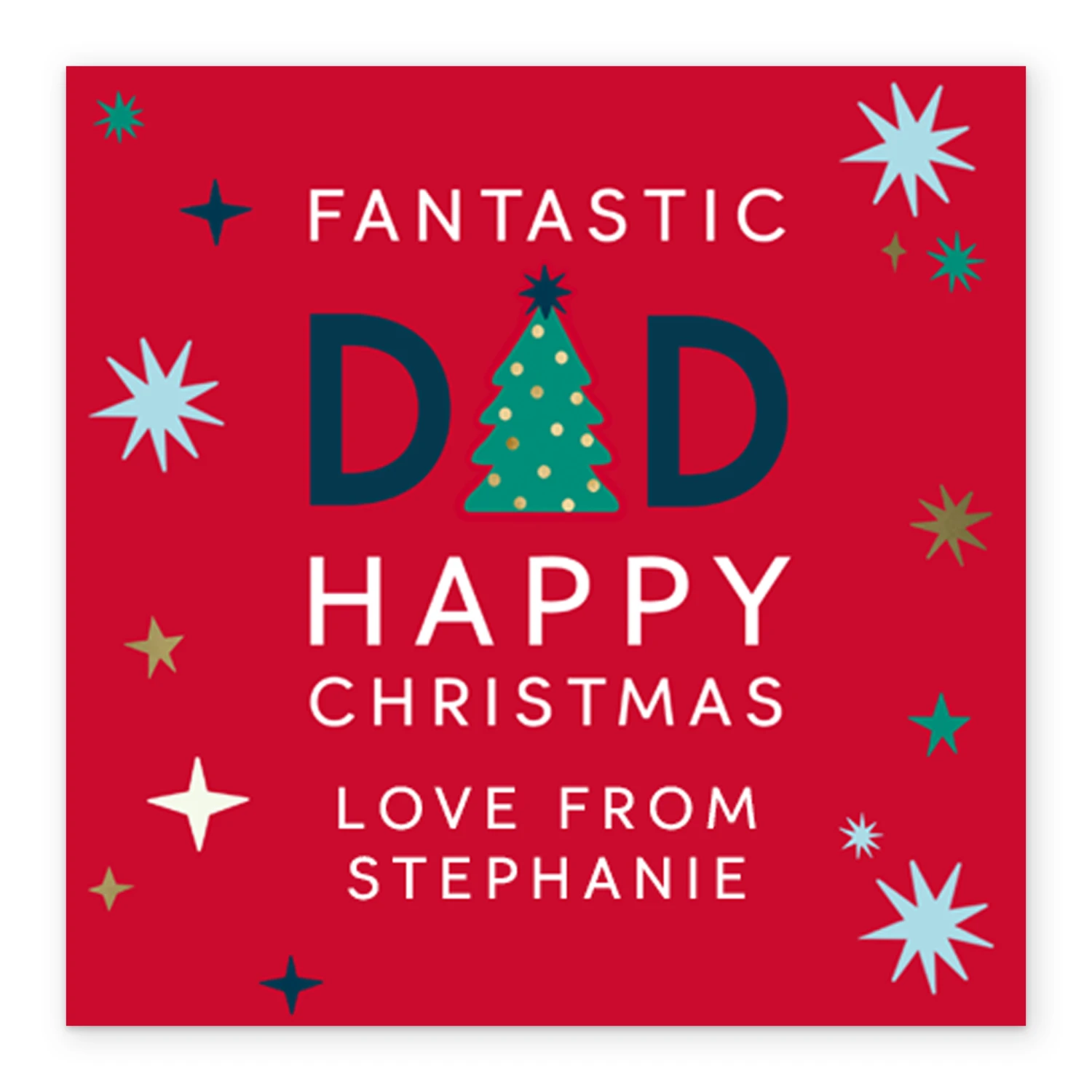 Pod Personalised Dad Modern Text Tree And Stars Christmas Card