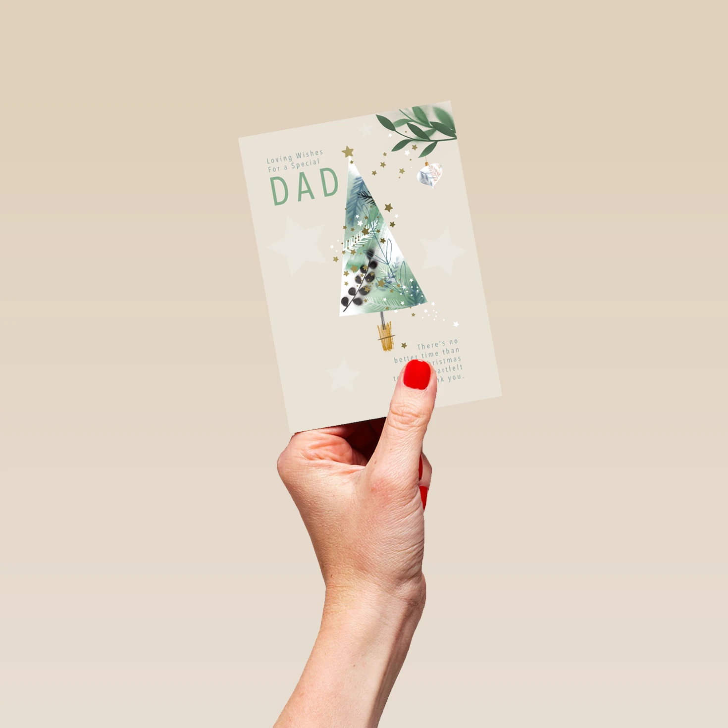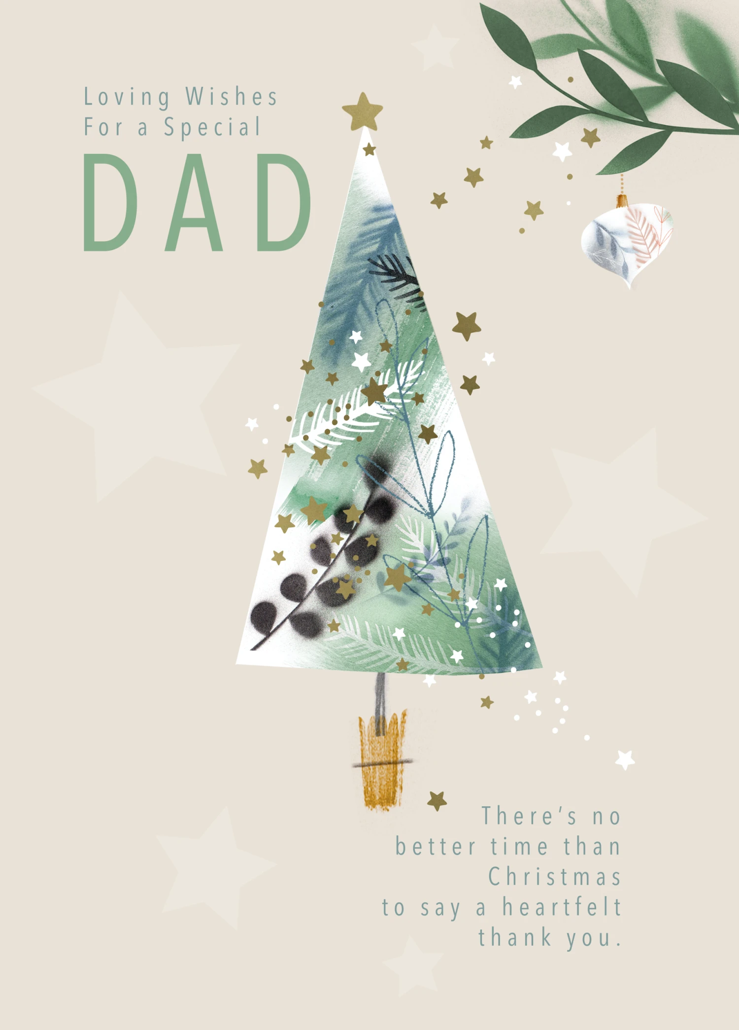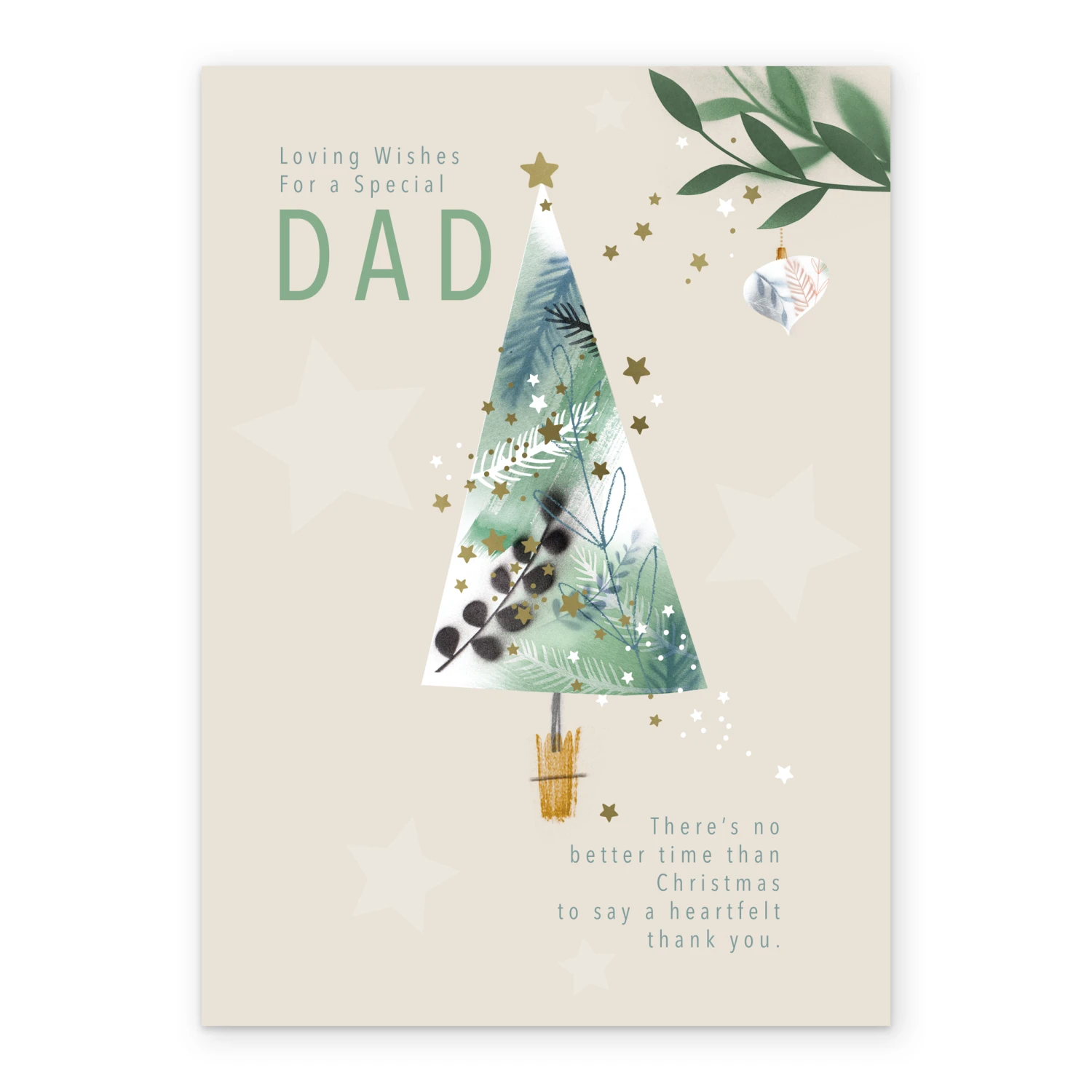 Pod Personalised Dad Tree Stars & Leaves Traditional Christmas Card