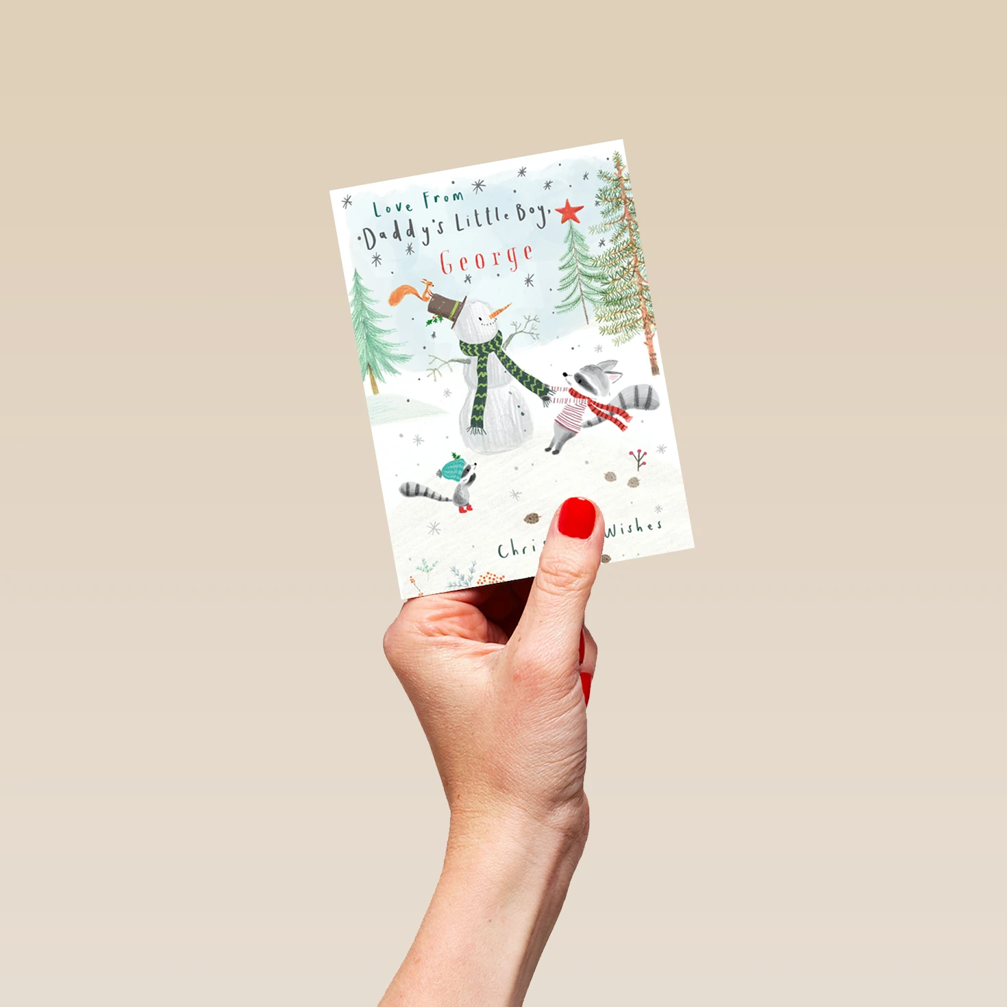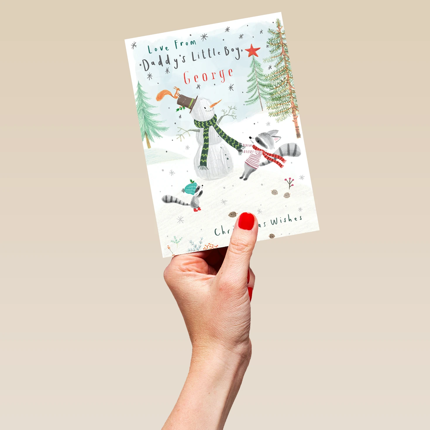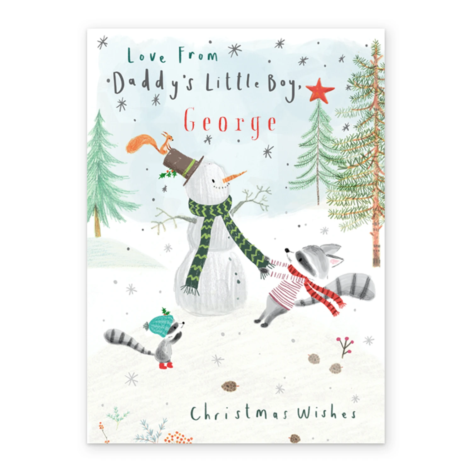 Pod Personalised Daddy From Little Boy Cute Snowman Raccoons Christmas Card