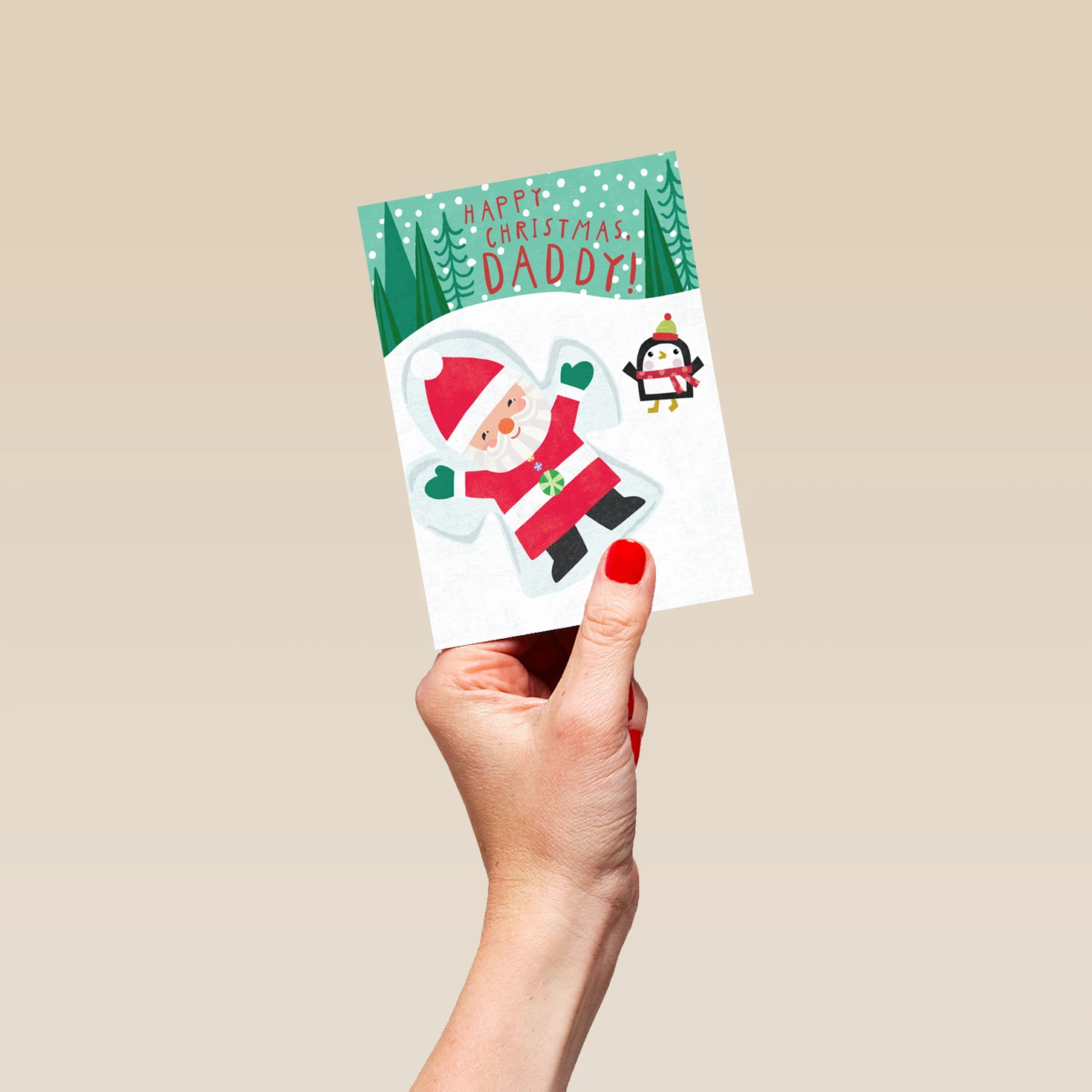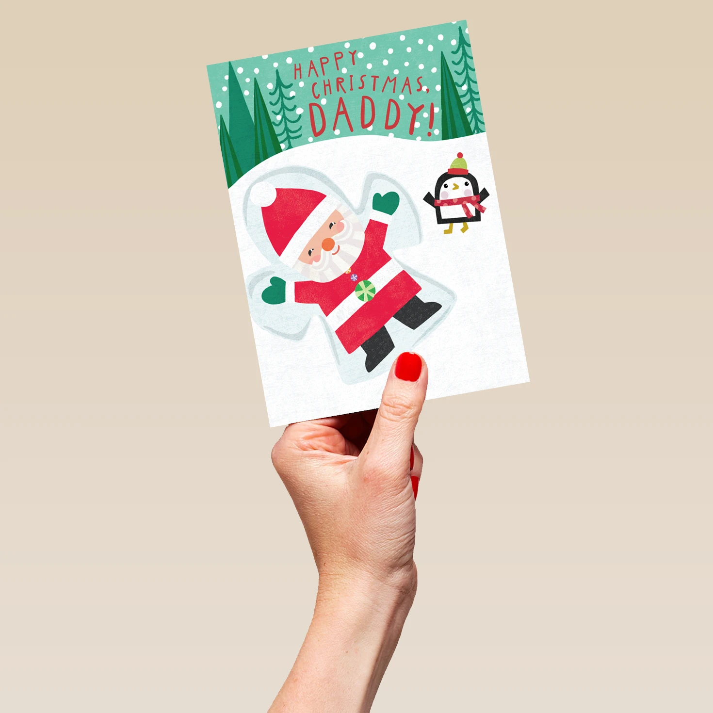 Pod Personalised Daddy Fun Santa Penguin Kids Christmas Card