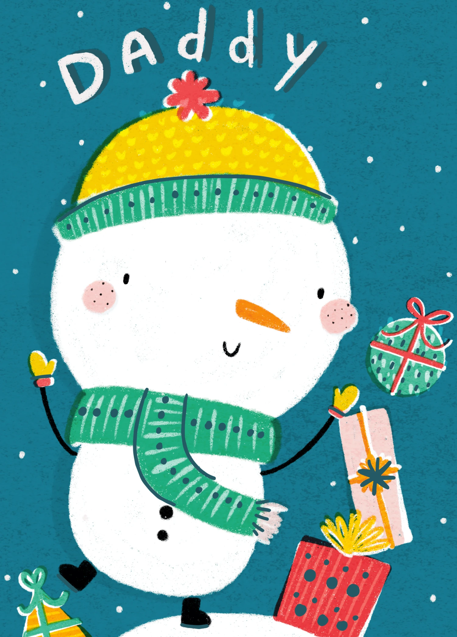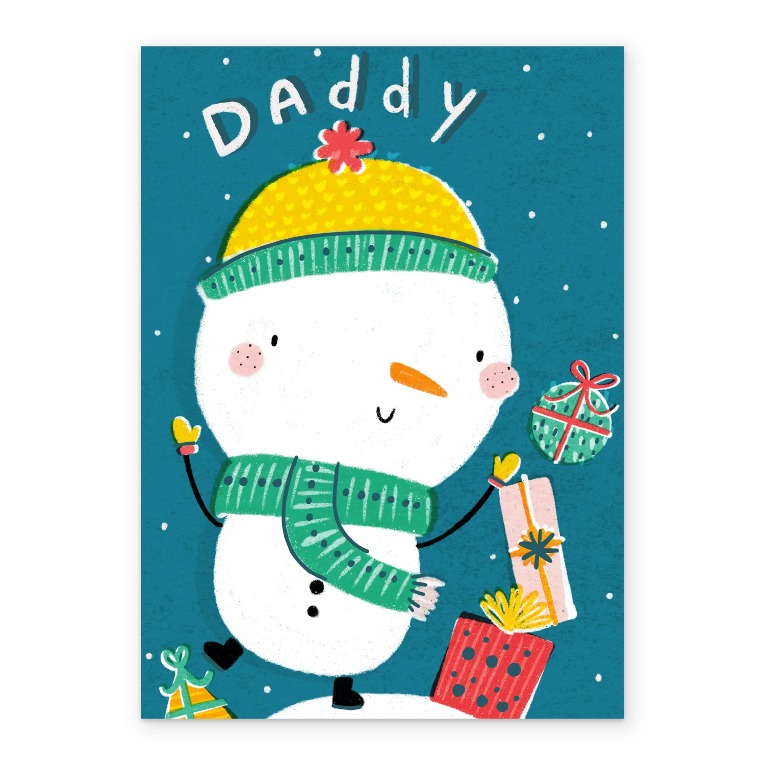 Show them you care with a personalised daddy fun snowman kids Christmas card from Hallmark. Our greetings cards are printed on premium quality, FSC®-certified card & delivered nationwide. This card is available as standard 12cm by 16.7cm and large 15.5cm by 21.6cm.