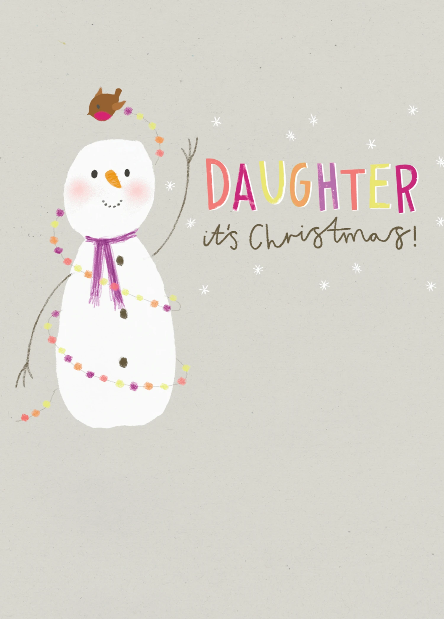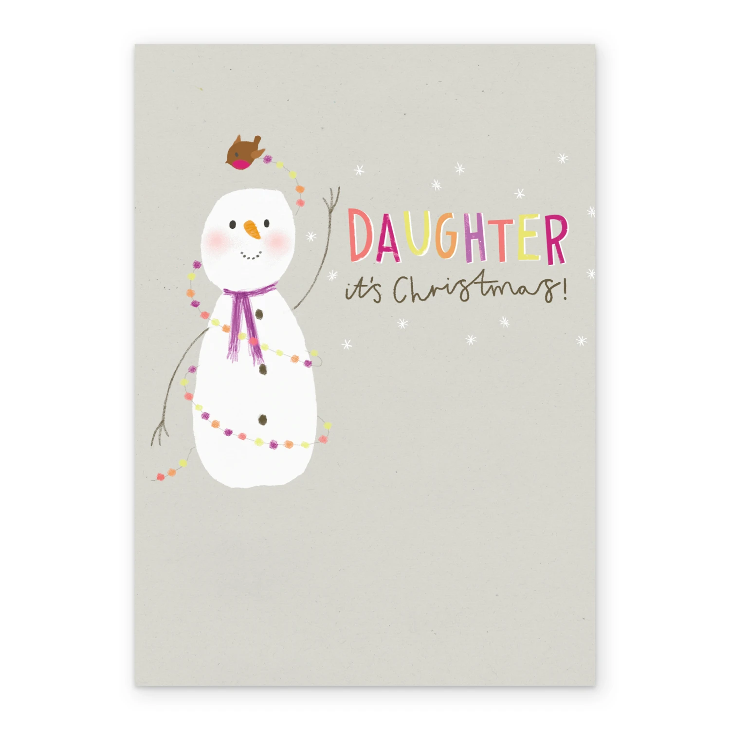 Show them you care with a personalised daughter cute snowman Christmas card from Hallmark. Our greetings cards are printed on premium quality, FSC®-certified card & delivered nationwide. This card is available as standard 12cm by 16.7cm and large 15.5cm by 21.6cm.